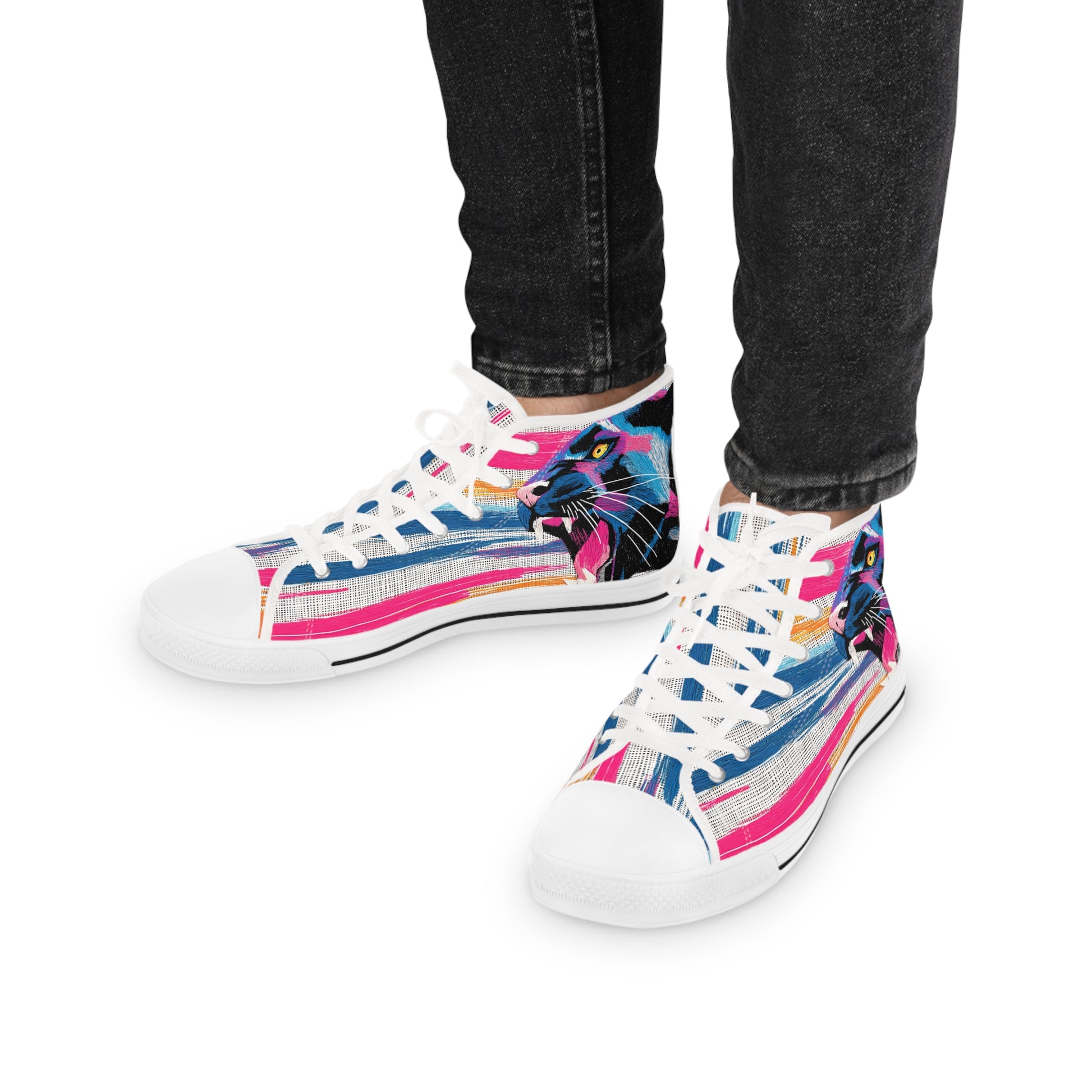 These panther sneakers are perfect for the stylish man who values both comfort and durability. The fine weave texture fabric and foamed lining make them super soft and comfortable. The shock-absorbent EVA insoles provide support for all-day wear. The black or white decoration adds a sleek touch to any outfit. Great for casual wear or stepping up your athleisure game.
