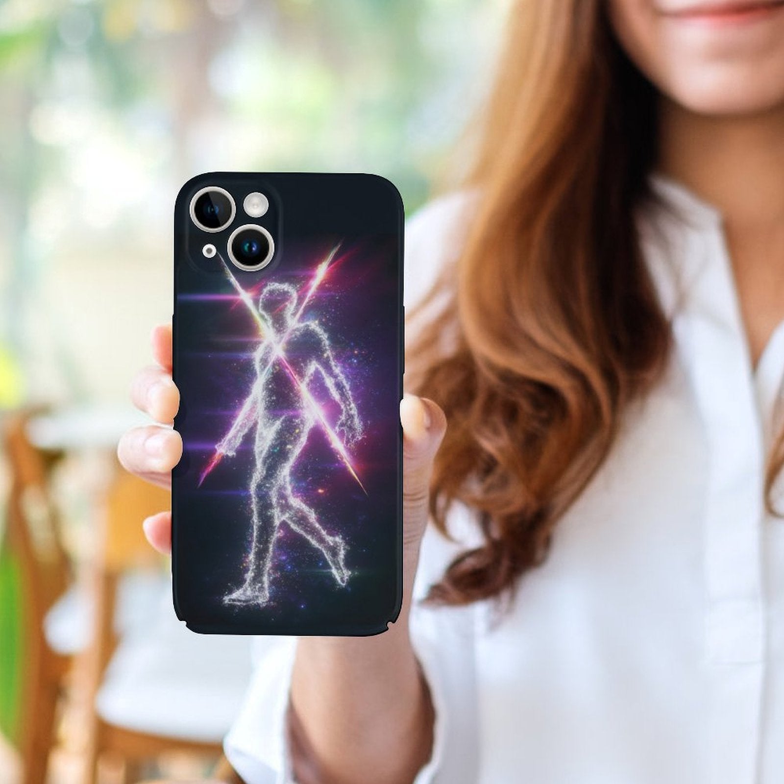Step into the galaxy with this electrifying iPhone 15 case featuring a silhouette made of stardust and beams of cosmic energy. The design echoes futuristic aesthetics and interstellar vibes—ideal for Sagittarians who crave adventure and Aquarians who lead with originality. Gen Z, tech enthusiasts, and party-goers will love this high-impact piece. Best for ages 18–30.