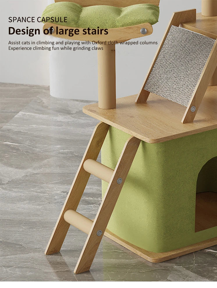 - Combines a cozy cat house, scratching posts, jumping platforms, and playful accessories to meet cats’ daily activity needs.