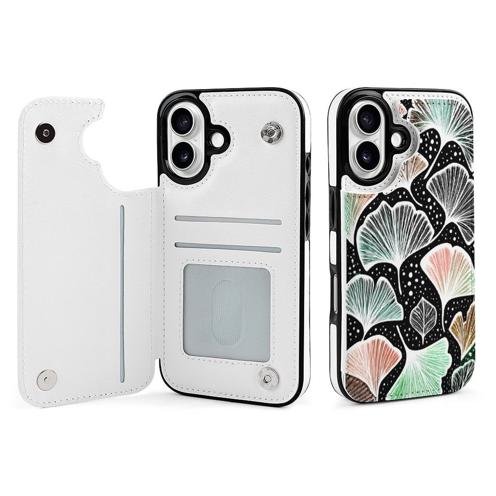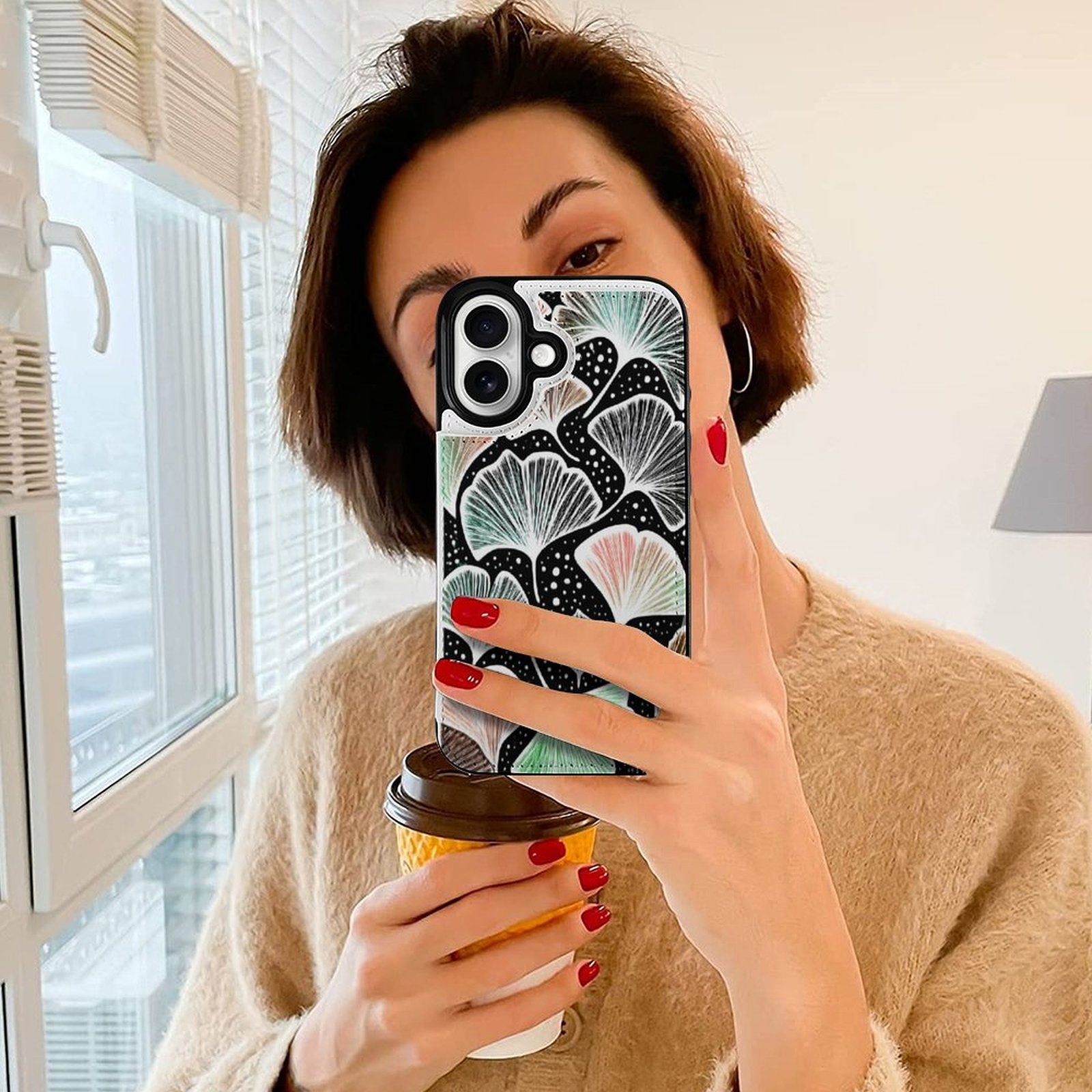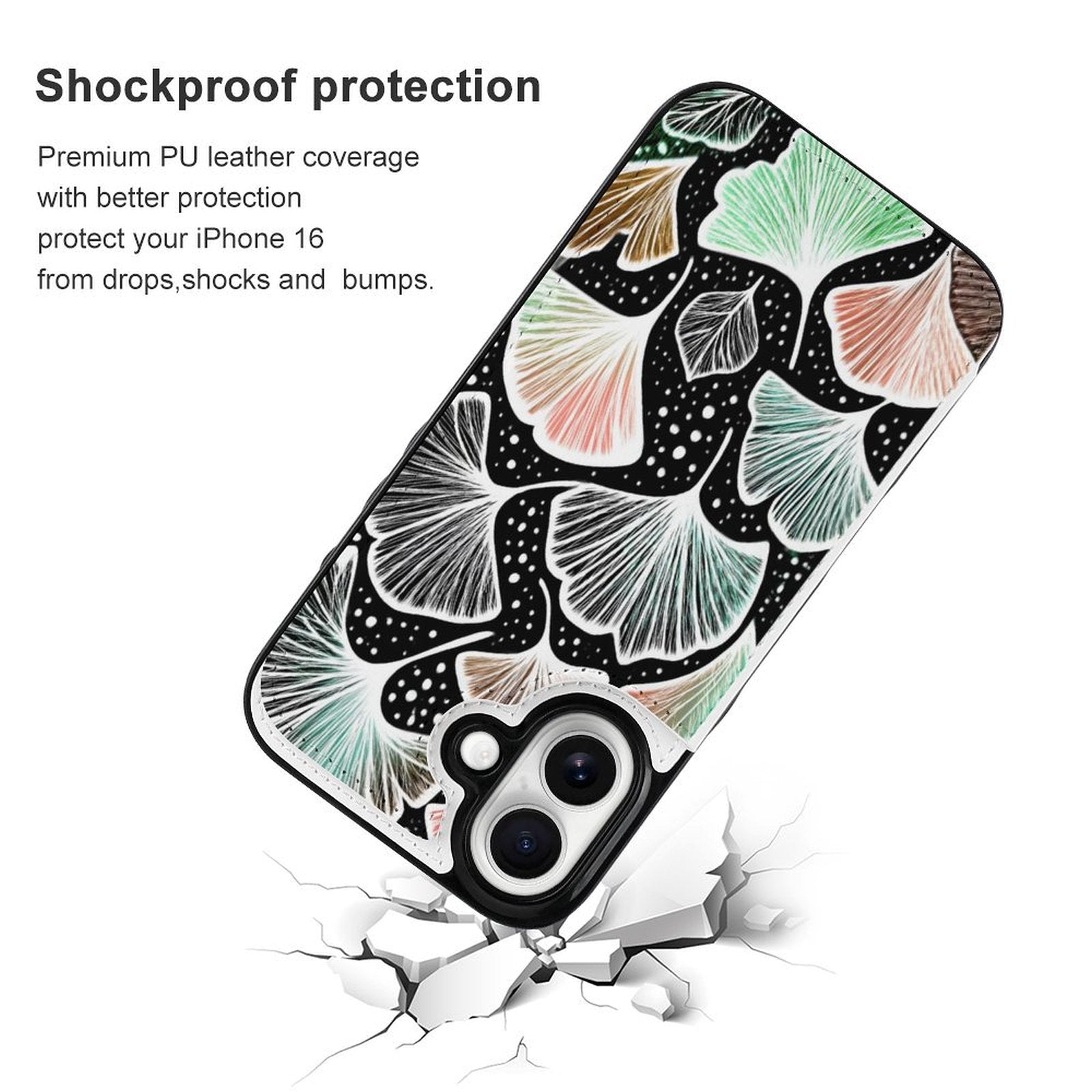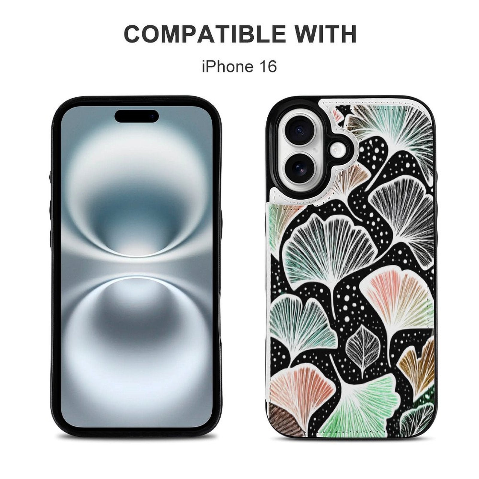 Featuring a poetic spread of colorful ginkgo leaves on a contrasting black backdrop, this iPhone 16 case captures the beauty of falling leaves and the quiet elegance of nature. With 3 built-in card slots and full soft-edge protection, it’s both practical and artsy — perfect for the Gen Z nature lover.