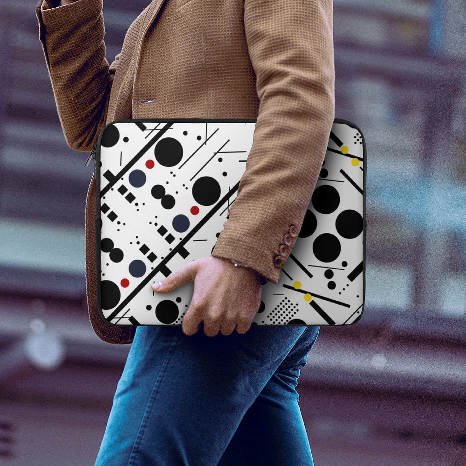 This laptop sleeve Inspired by Bauhaus design, this laptop sleeve features a bold black-and-white base accented with red, yellow, and blue geometric shapes. It perfectly blends structure with creativity, making it ideal for Gen Z users who love futuristic aesthetics. Best suited as a unique gift for Aquarius and Gemini—signs known for innovation and versatility.