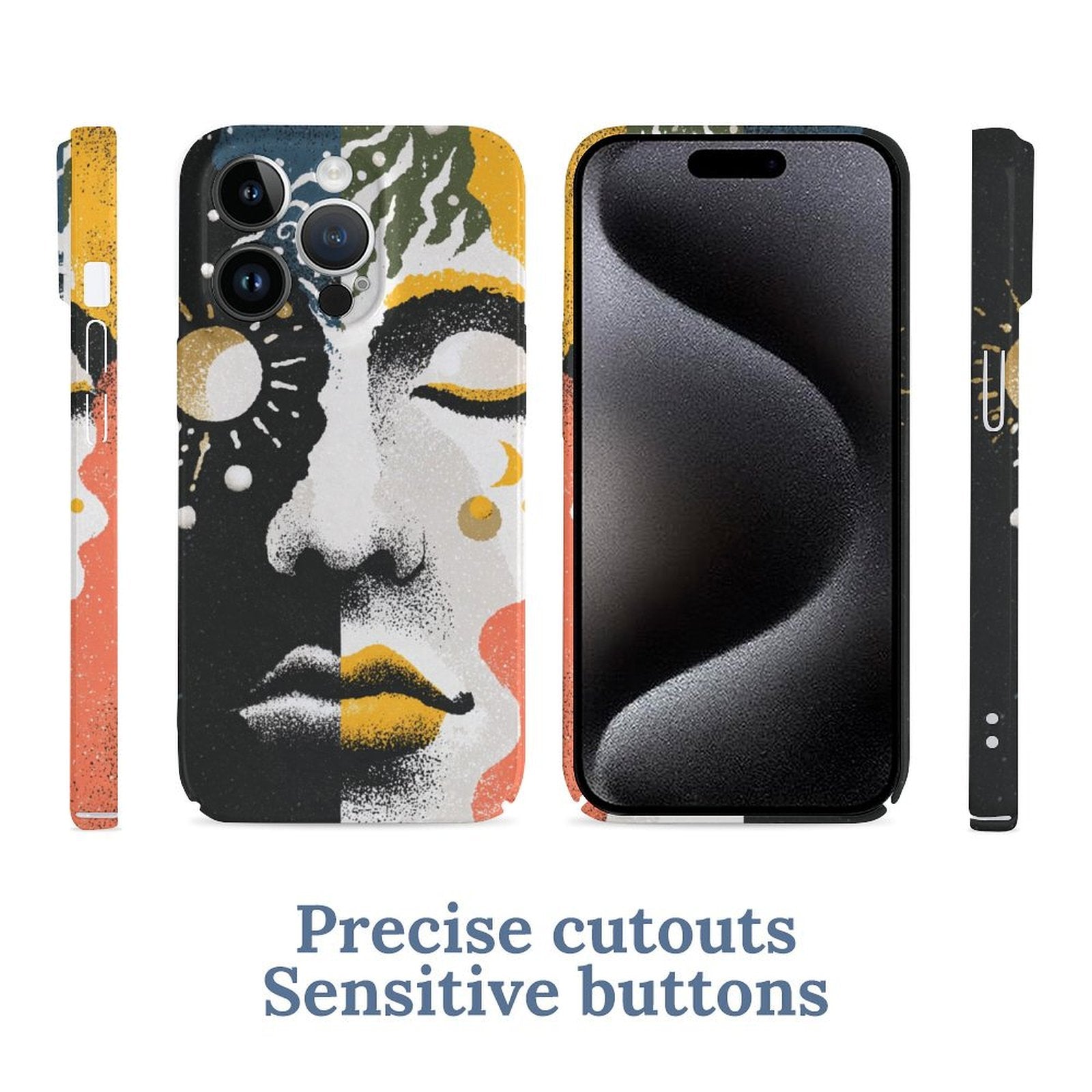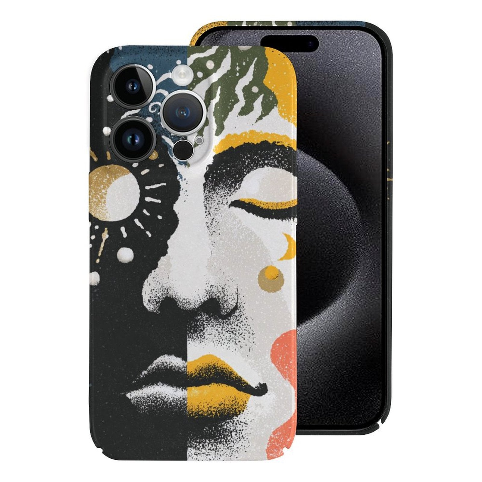 Art-Inspired Design: A mystic fusion of moon, sun, and human face—this case tells a story and makes your phone stand out.