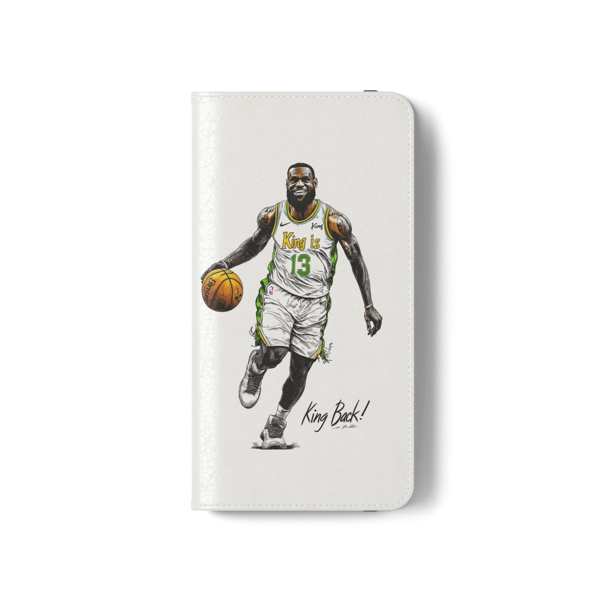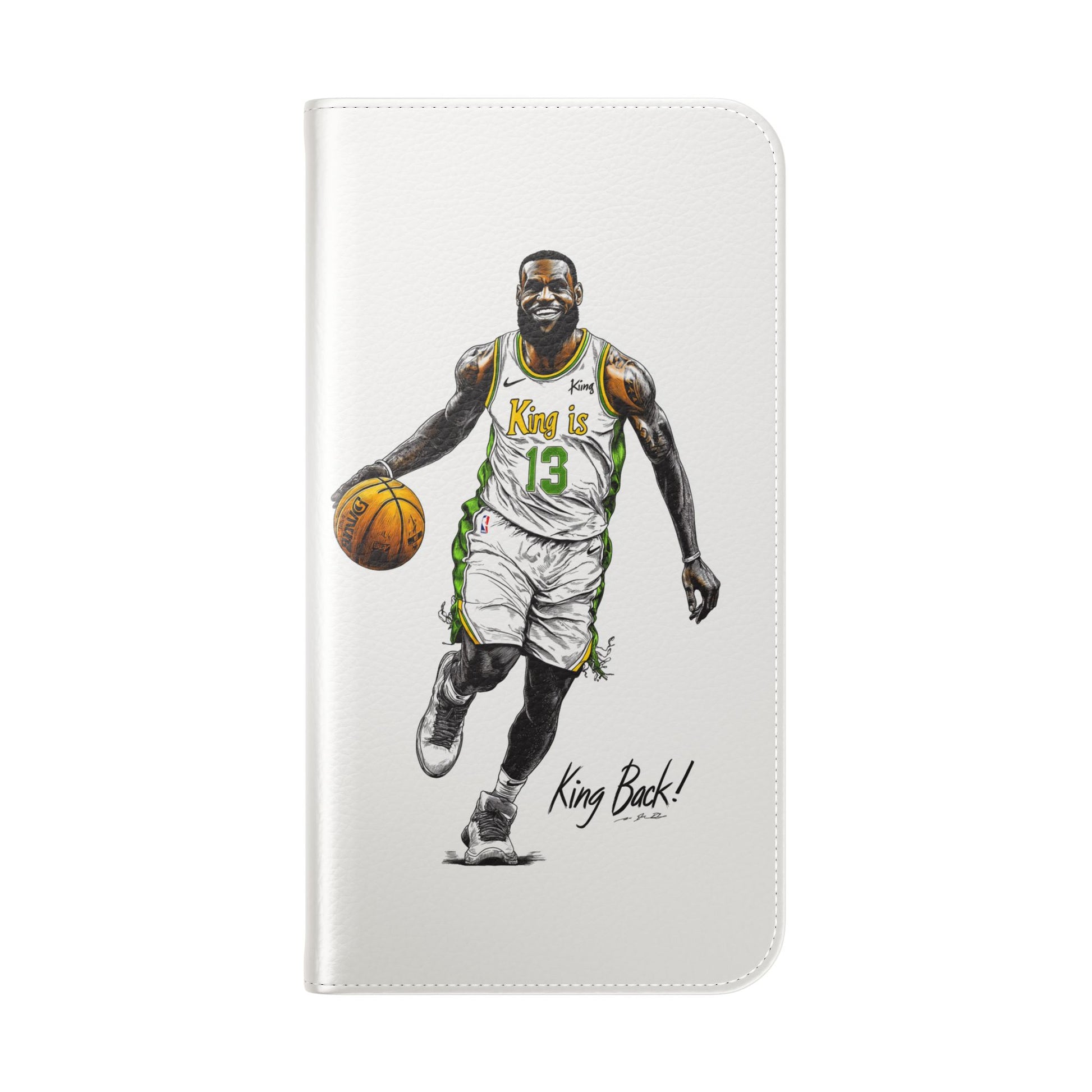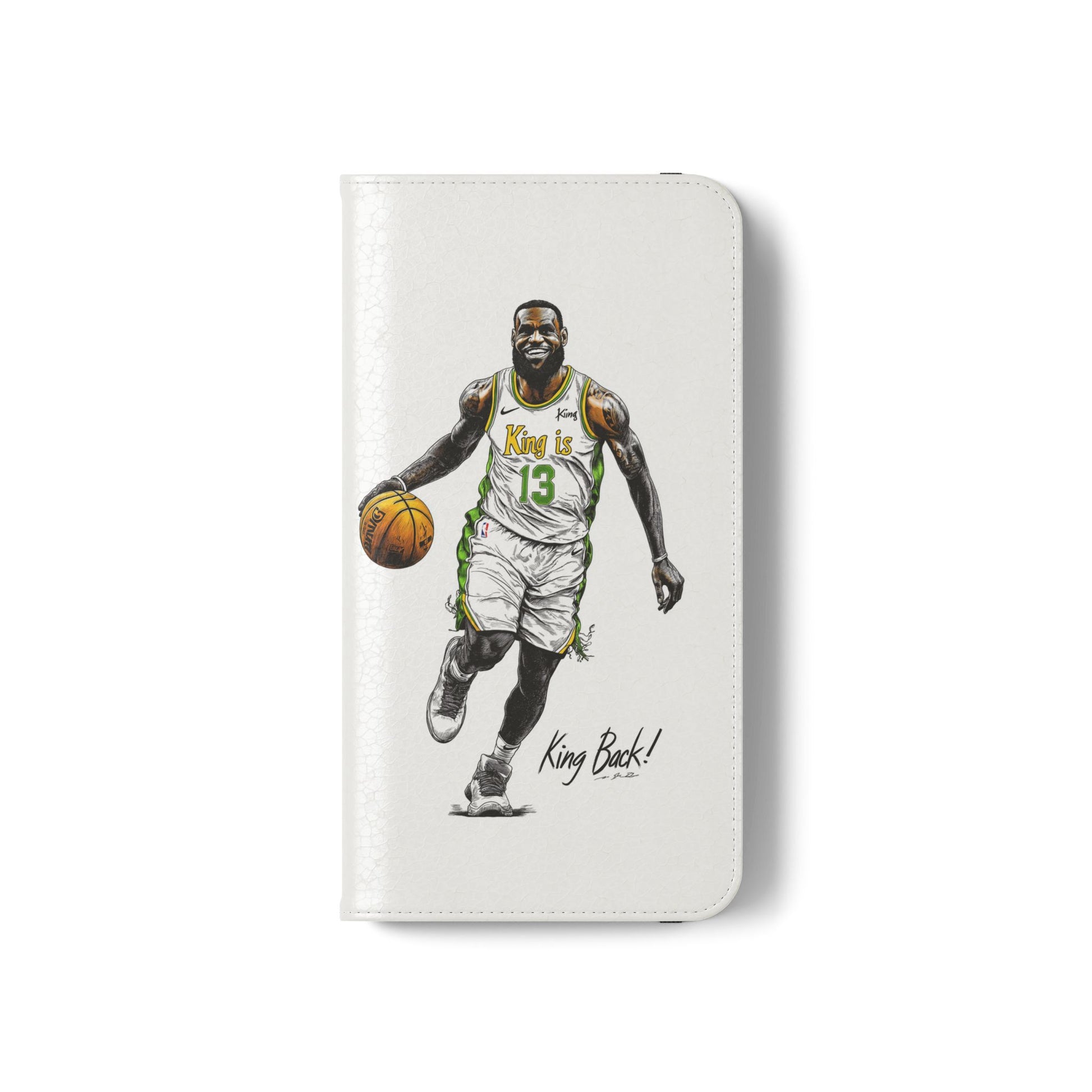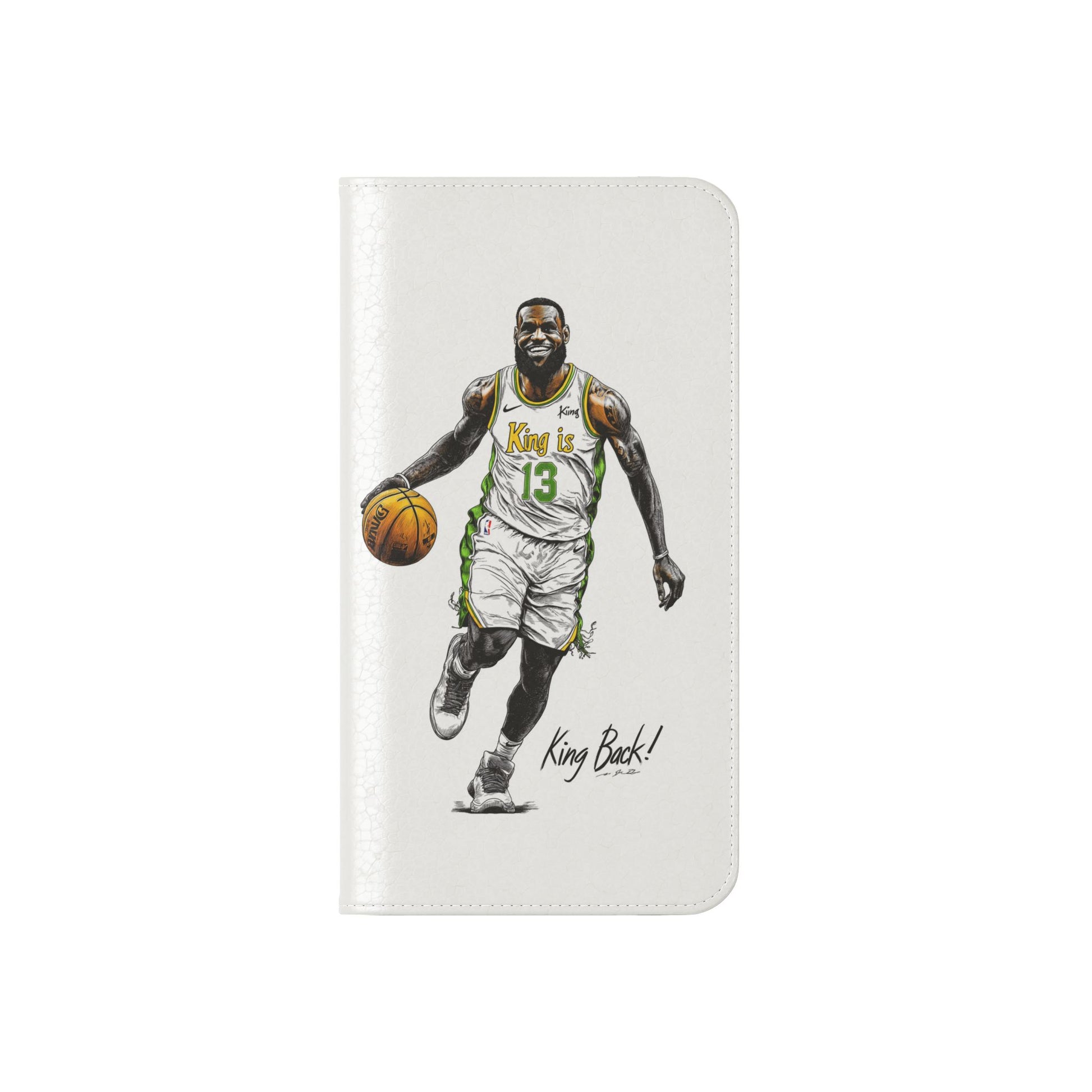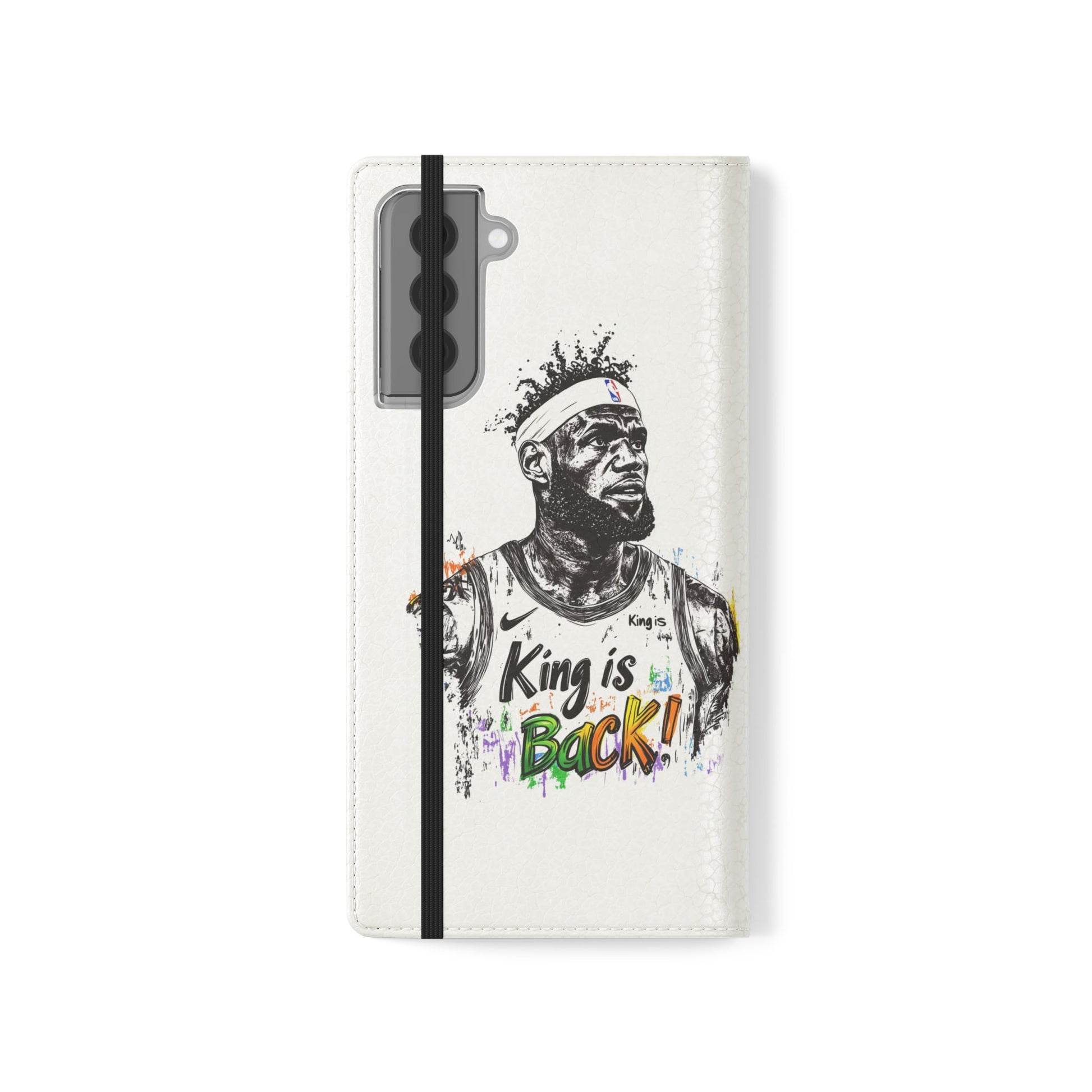 NBA LeBron James Flip Cases for Basketball Fans, featuring a King is Back design. Durable faux leather phone cover with convenient compartments for storing cards and cash. Perfect gift for him, ideal for athletic accessories. Relevant for NBA and basketball enthusiasts, suitable for birthdays, Father's Day, and sports celebrations.