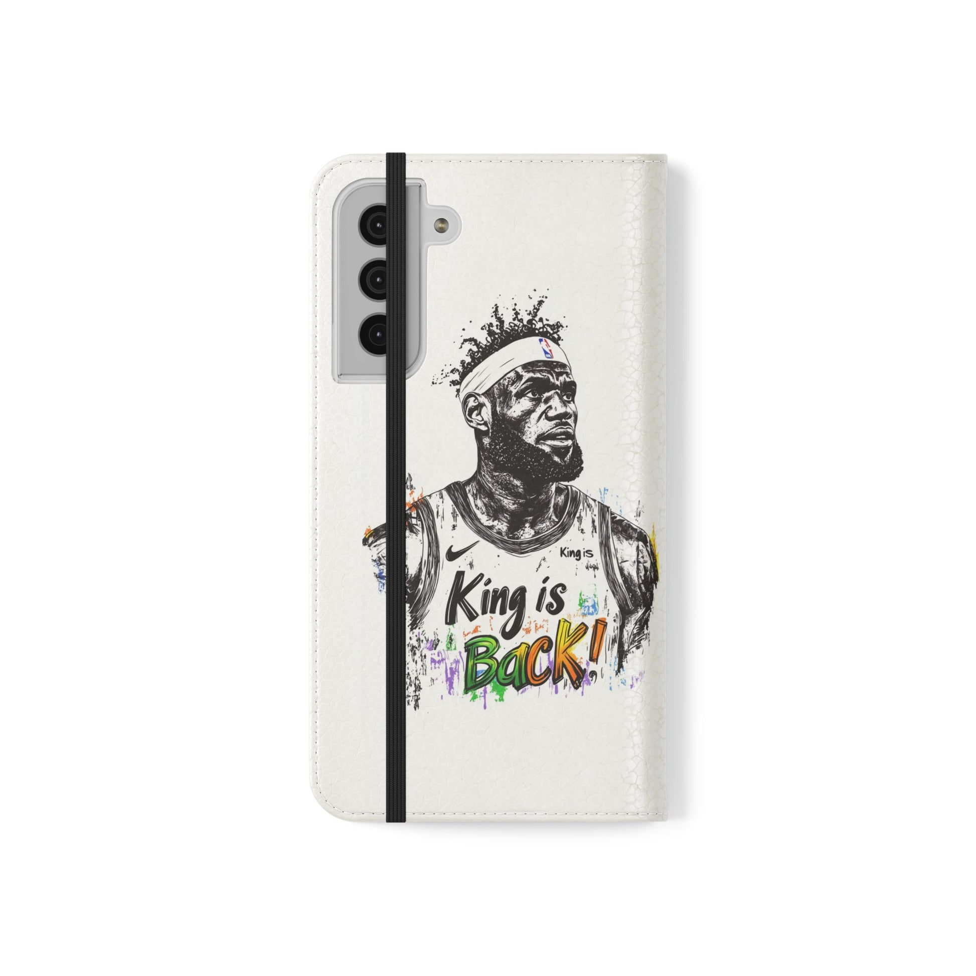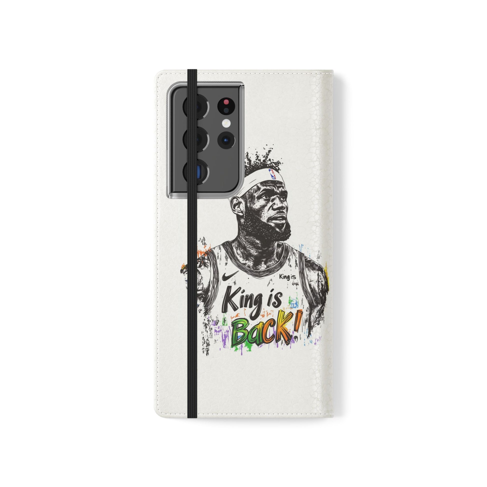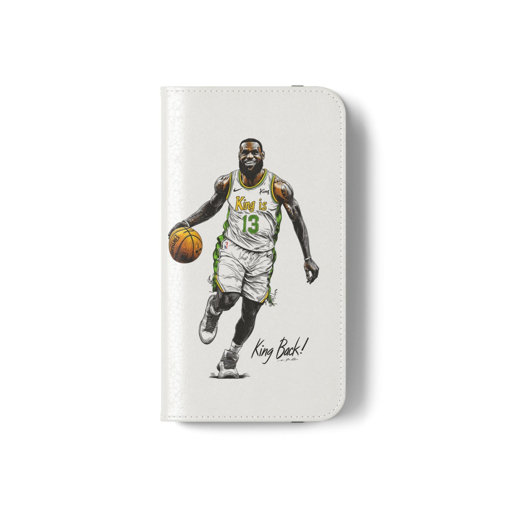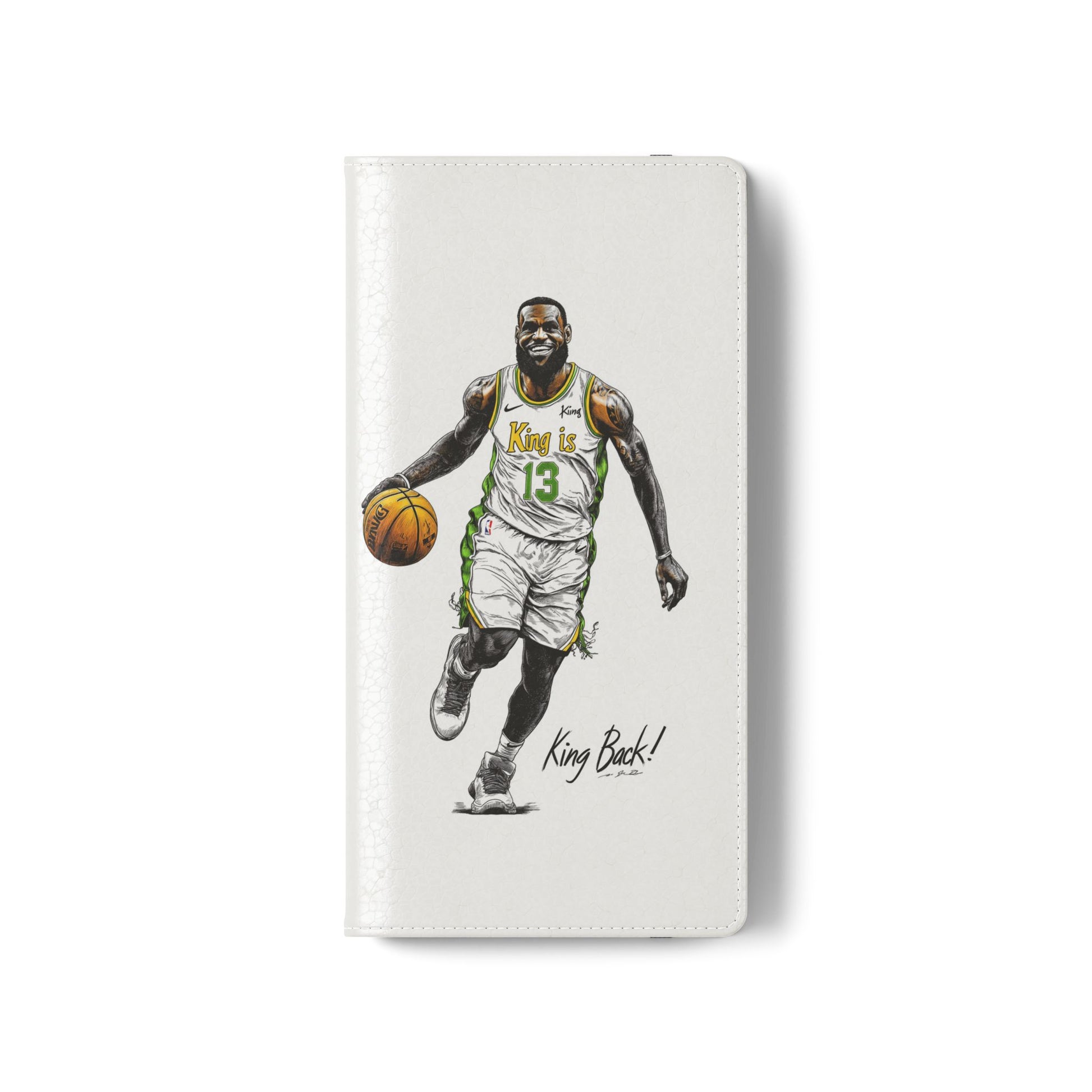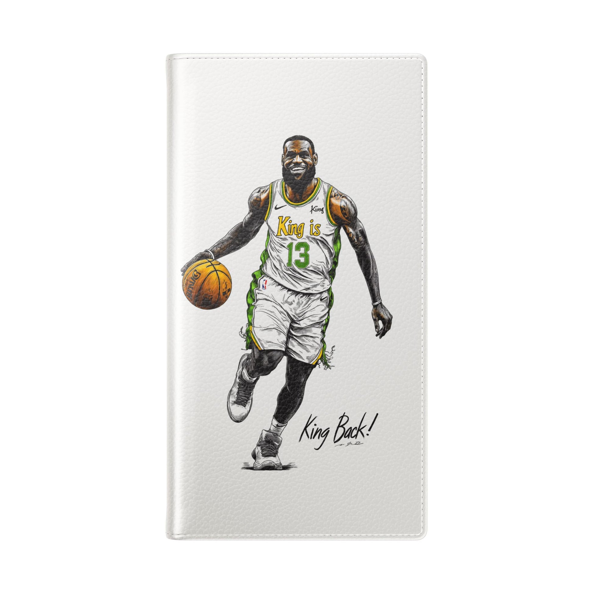 NBA LeBron James Flip Cases for Basketball Fans, featuring a King is Back design. Durable faux leather phone cover with convenient compartments for storing cards and cash. Perfect gift for him, ideal for athletic accessories. Relevant for NBA and basketball enthusiasts, suitable for birthdays, Father's Day, and sports celebrations.