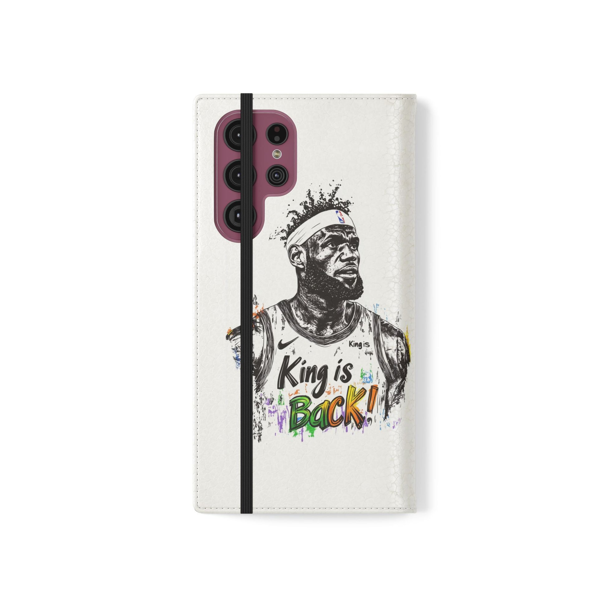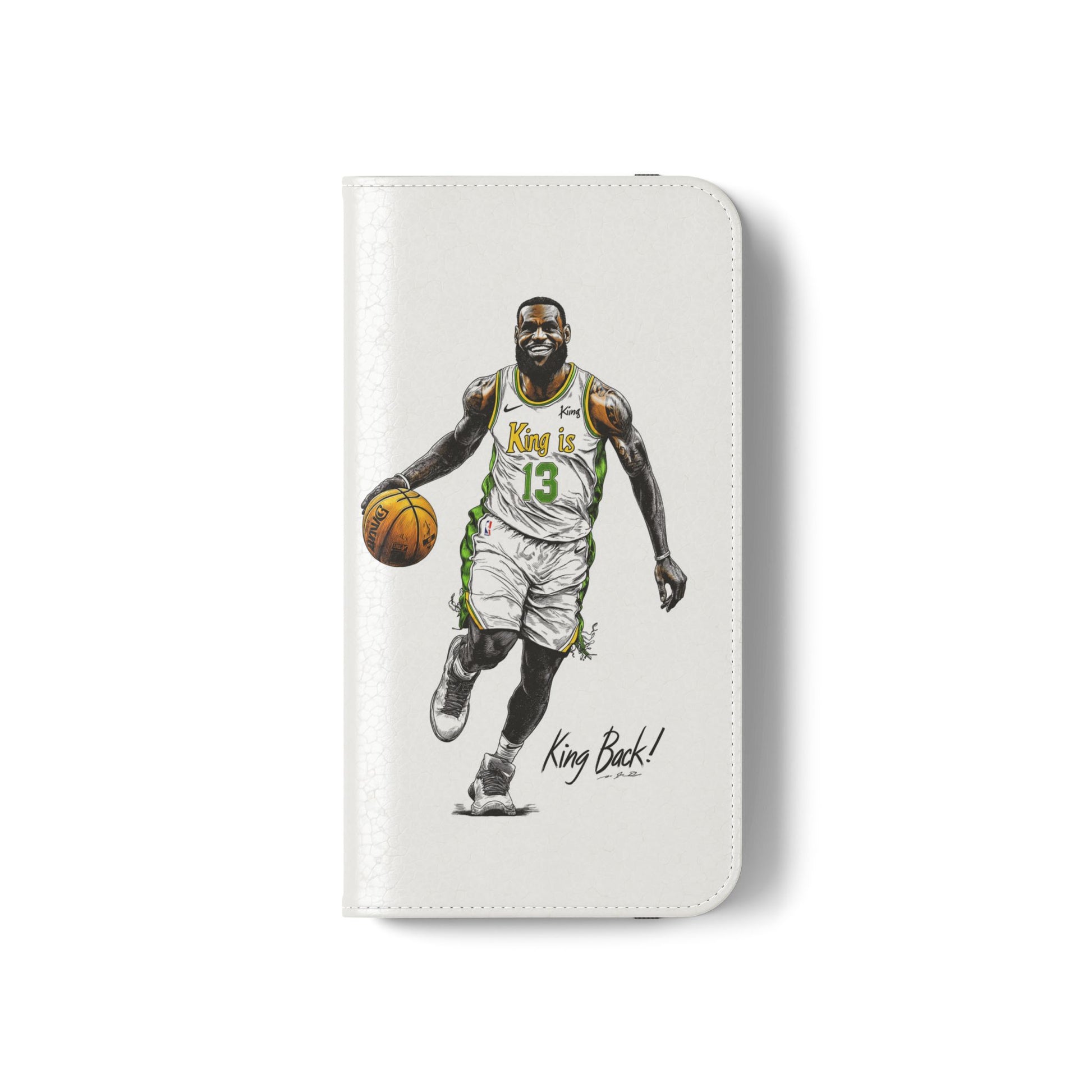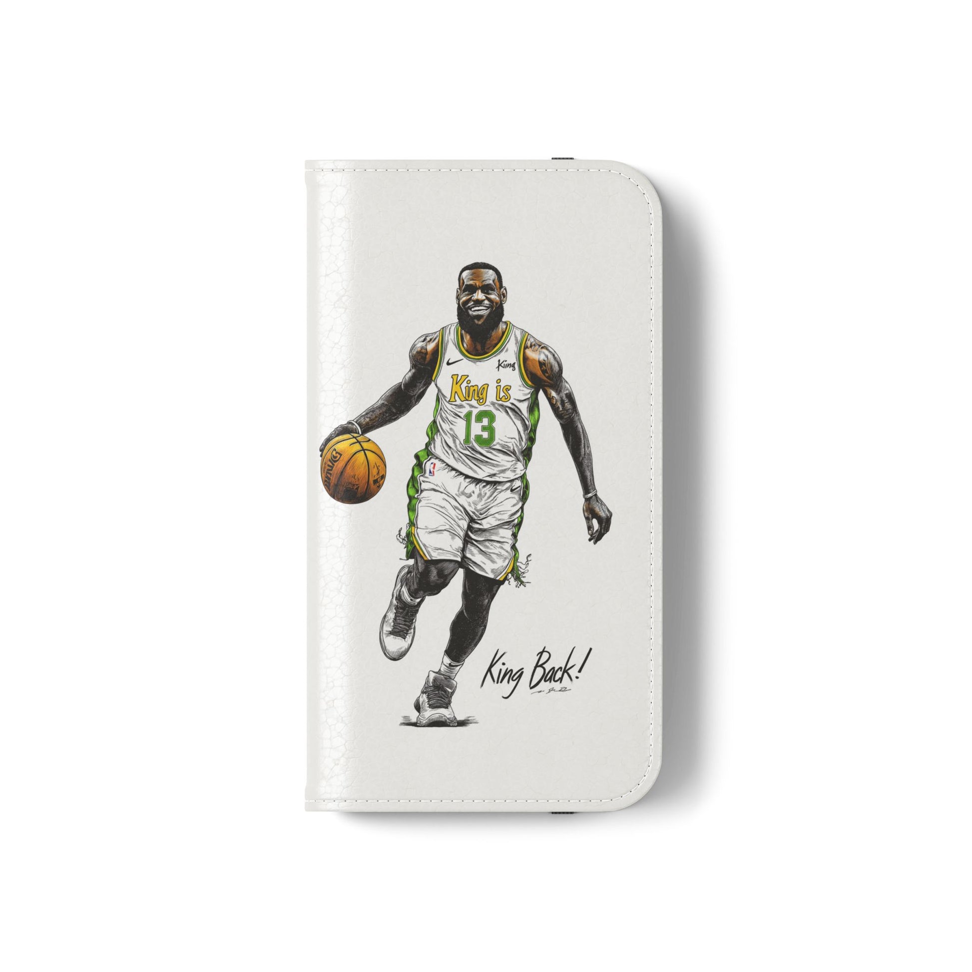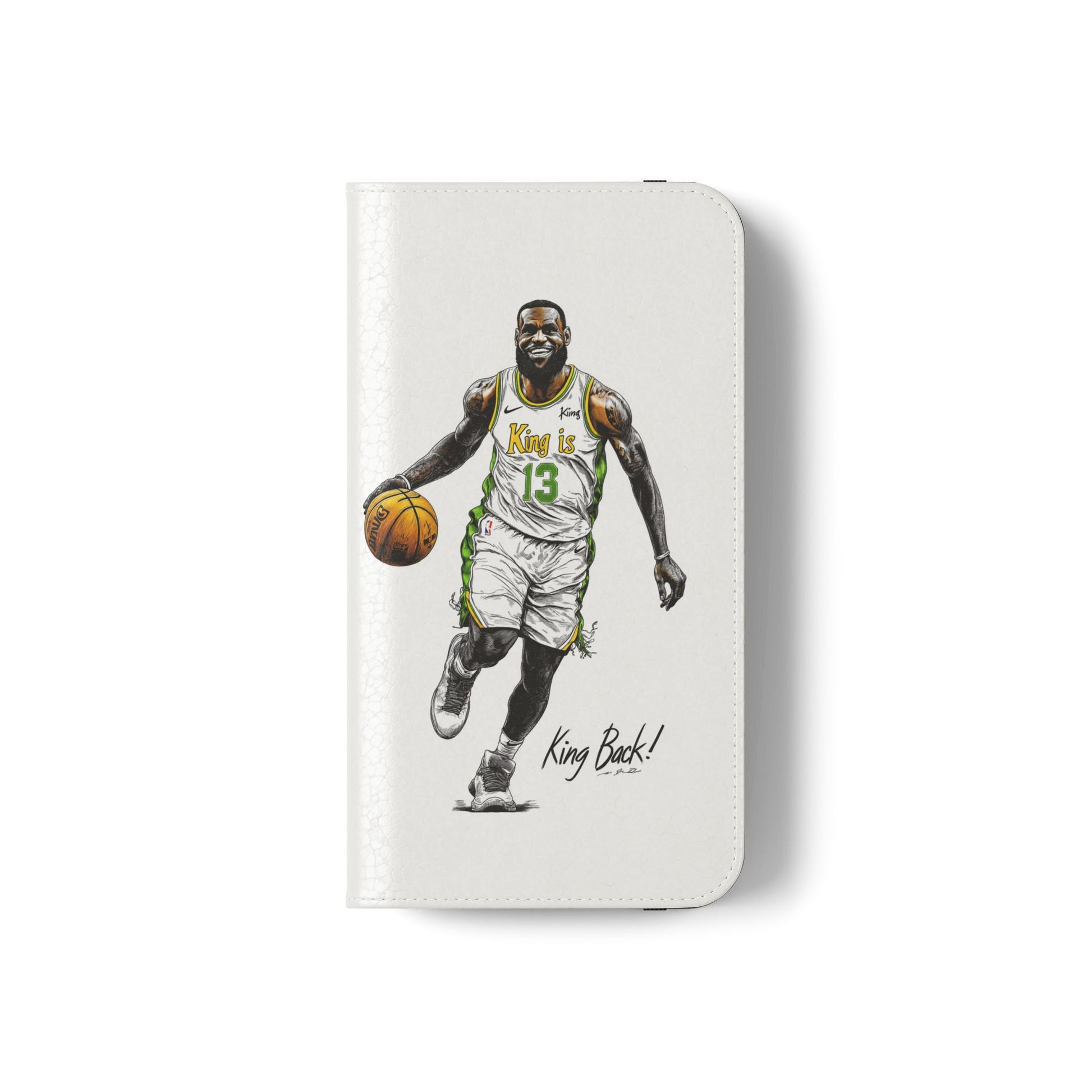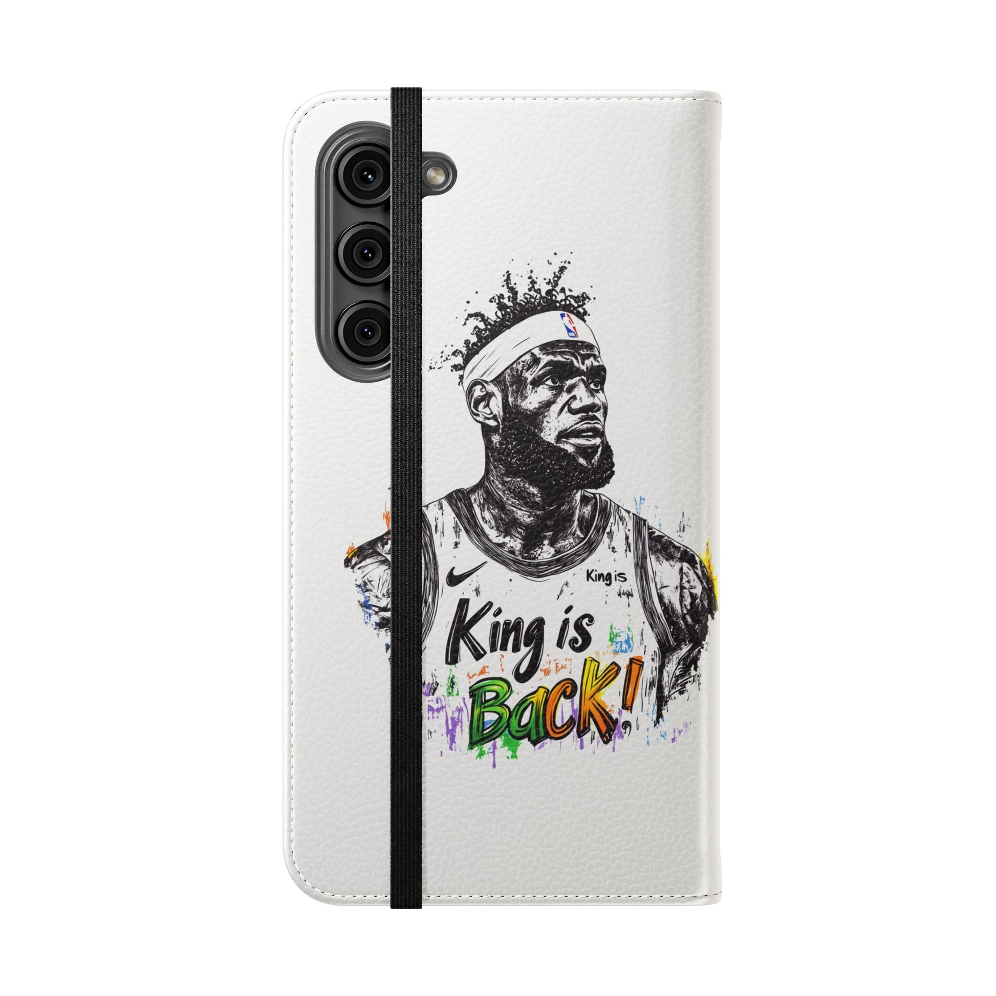NBA LeBron James Flip Cases for Basketball Fans, featuring a King is Back design. Durable faux leather phone cover with convenient compartments for storing cards and cash. Perfect gift for him, ideal for athletic accessories. Relevant for NBA and basketball enthusiasts, suitable for birthdays, Father's Day, and sports celebrations.