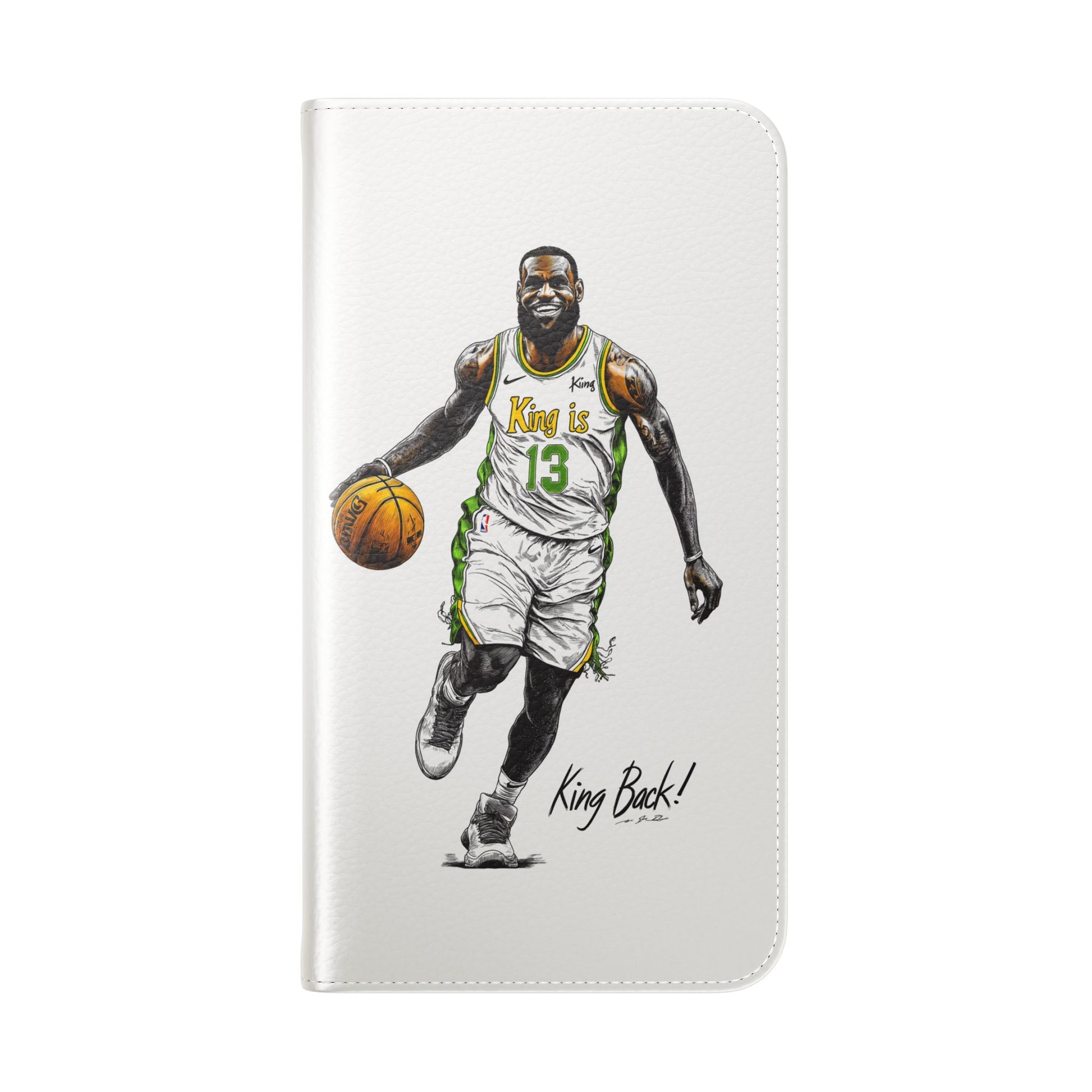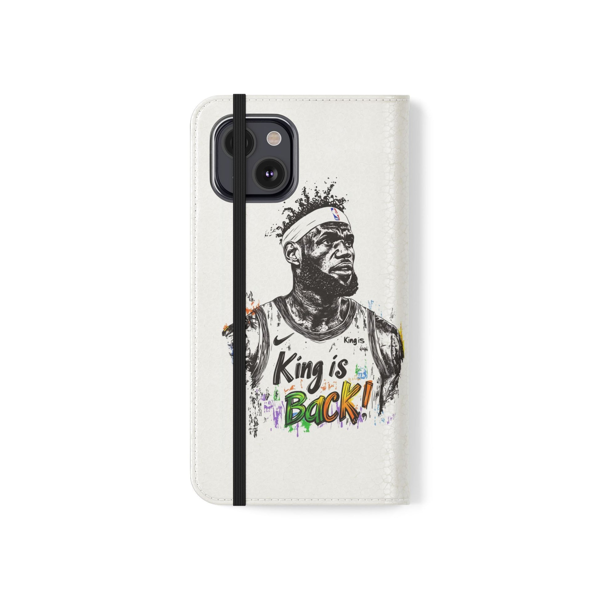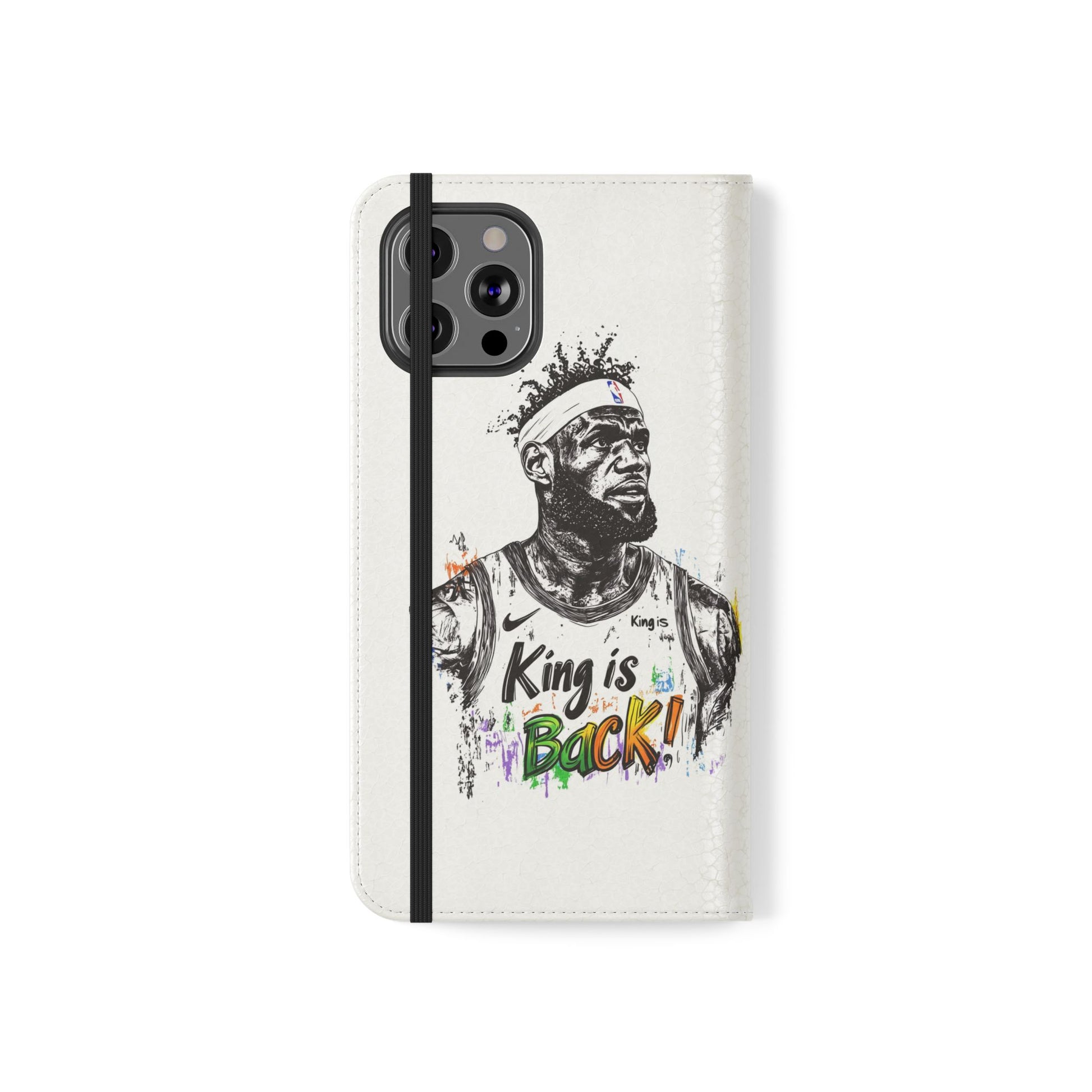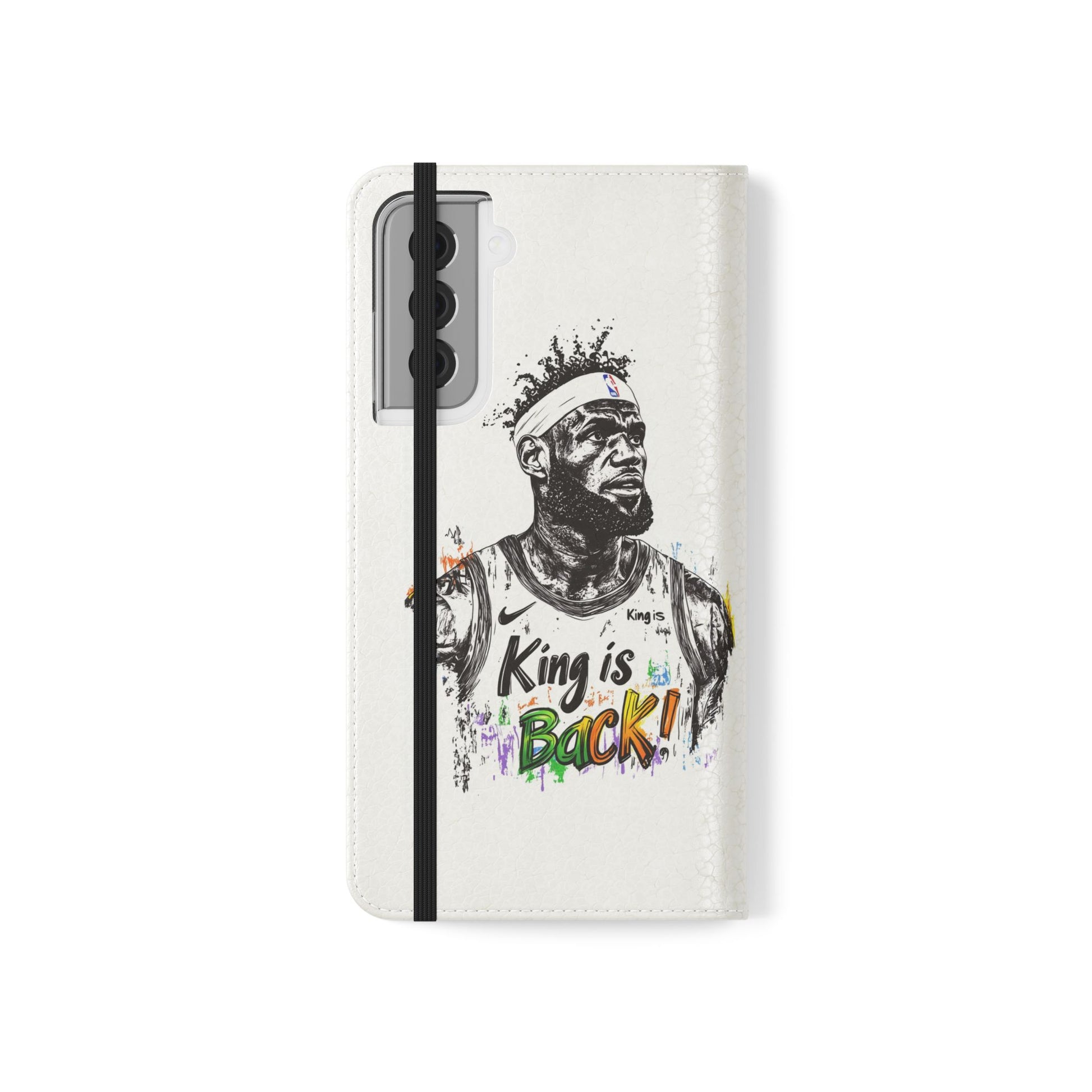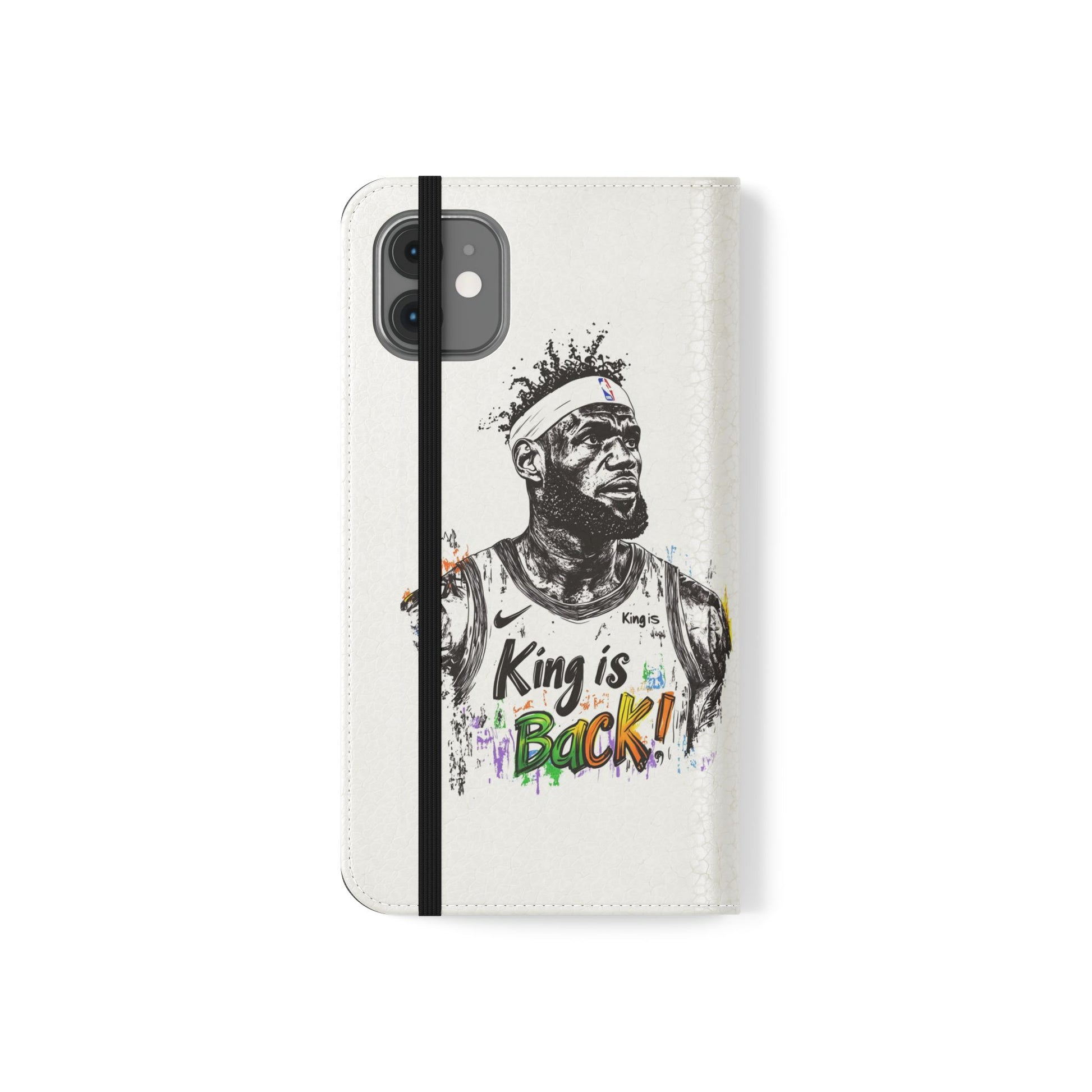NBA LeBron James Flip Cases for Basketball Fans, featuring a King is Back design. Durable faux leather phone cover with convenient compartments for storing cards and cash. Perfect gift for him, ideal for athletic accessories. Relevant for NBA and basketball enthusiasts, suitable for birthdays, Father's Day, and sports celebrations.