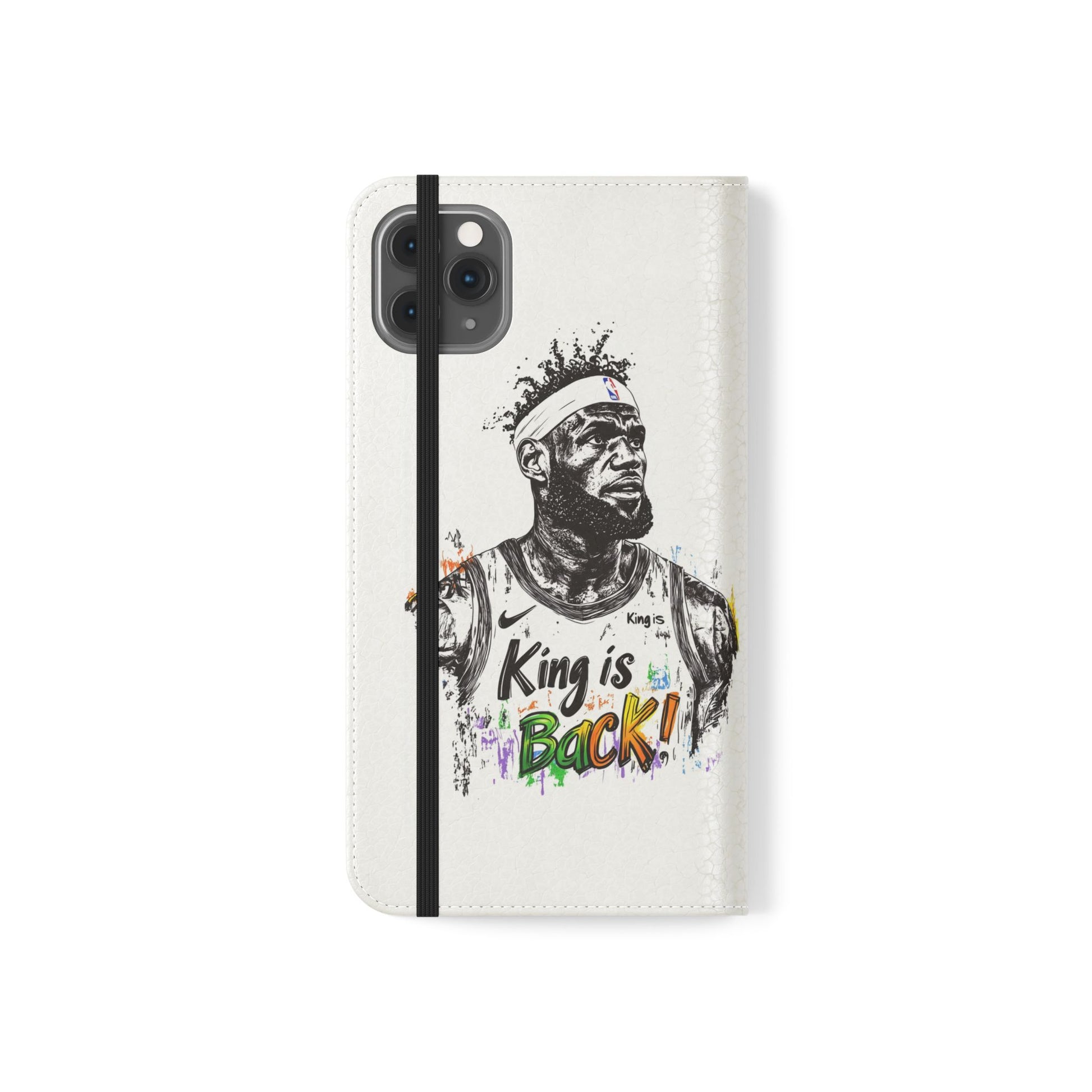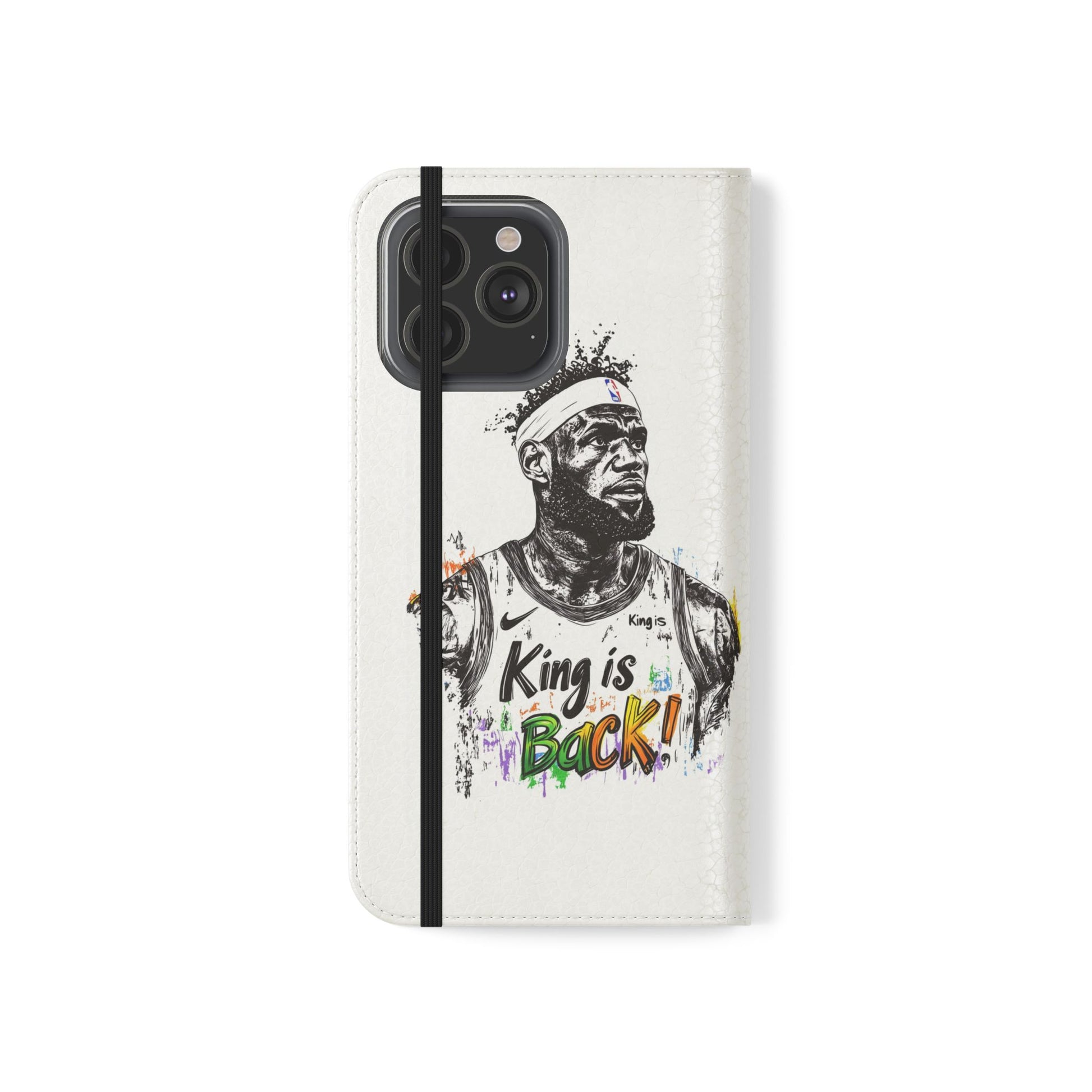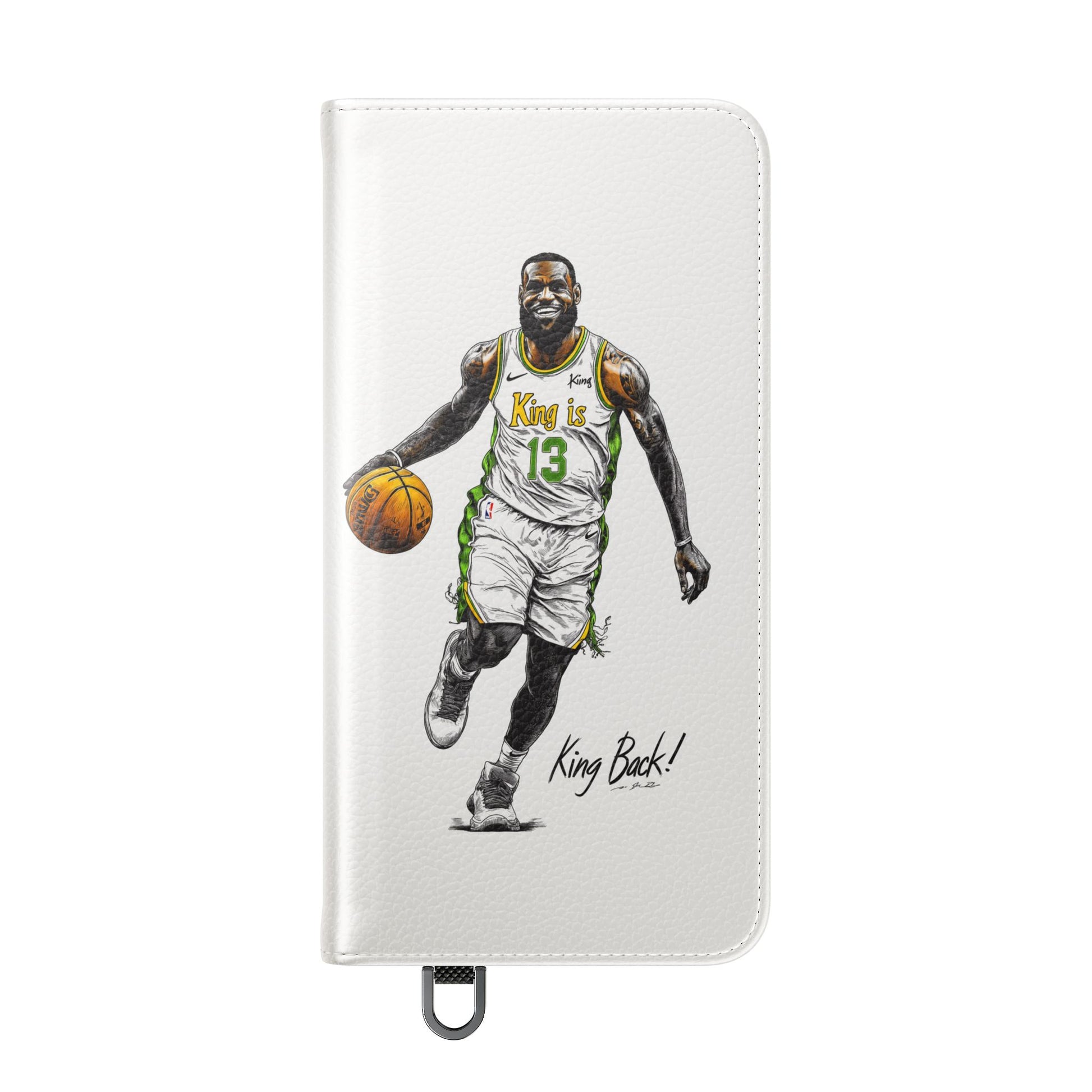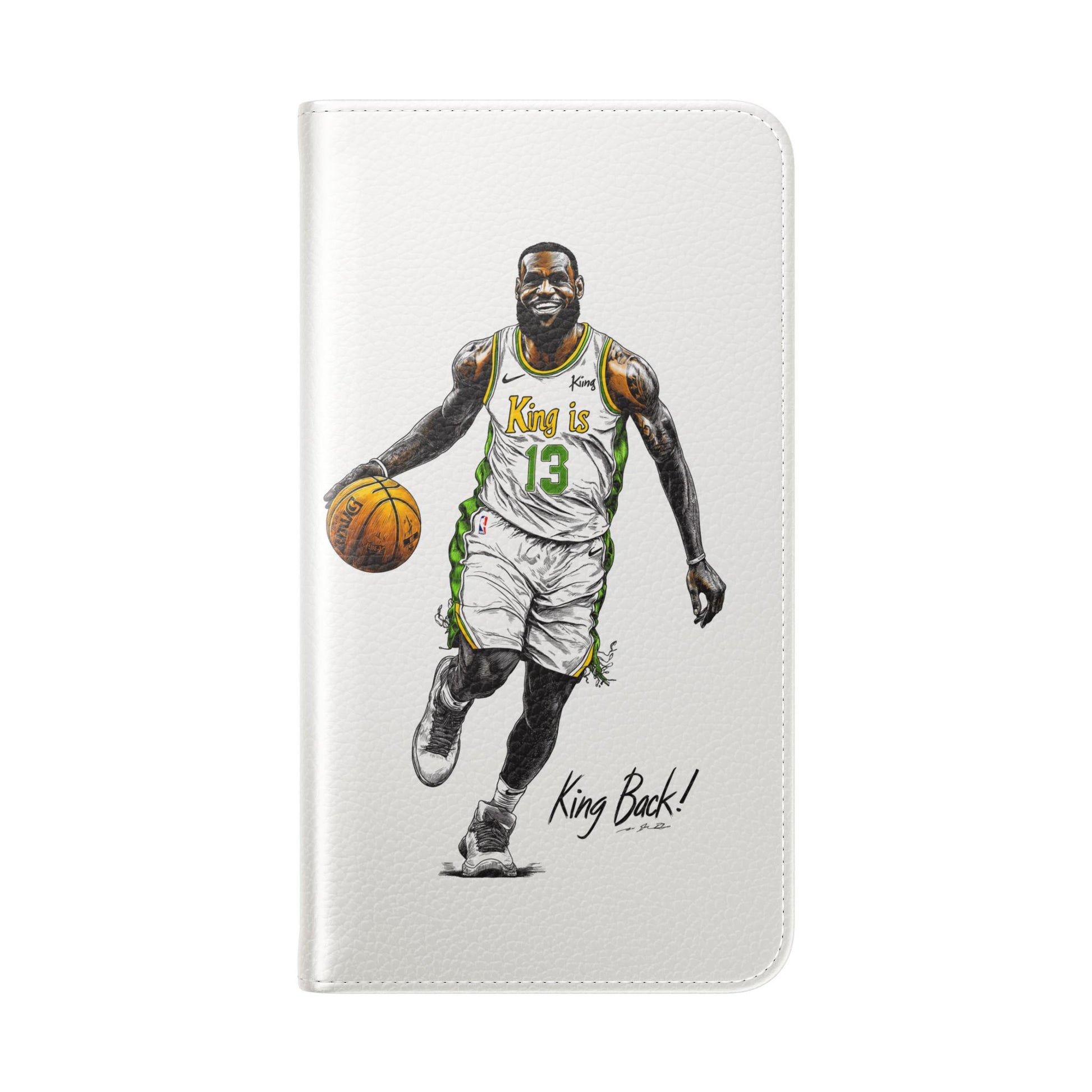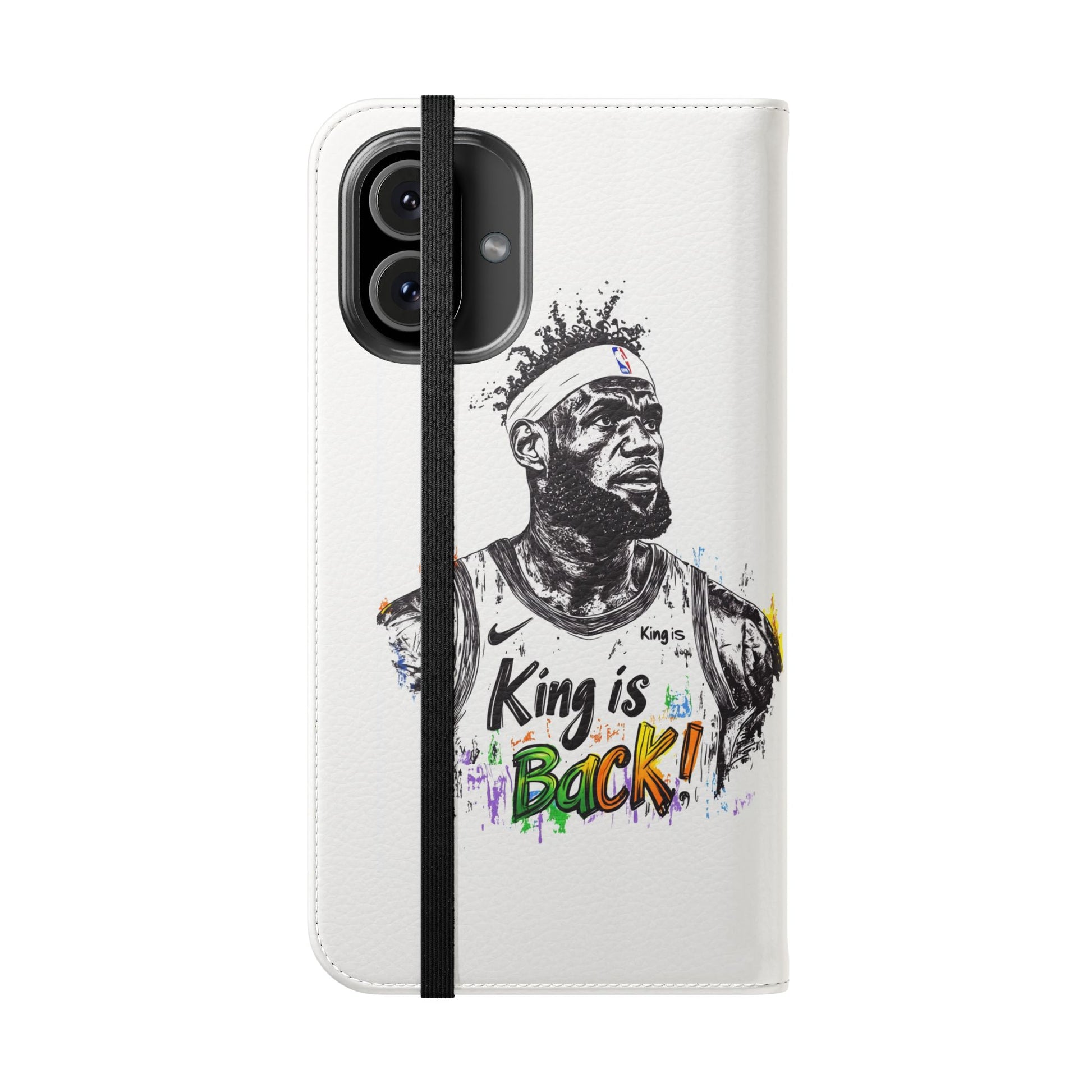 NBA LeBron James Flip Cases for Basketball Fans, featuring a King is Back design. Durable faux leather phone cover with convenient compartments for storing cards and cash. Perfect gift for him, ideal for athletic accessories. Relevant for NBA and basketball enthusiasts, suitable for birthdays, Father's Day, and sports celebrations.
