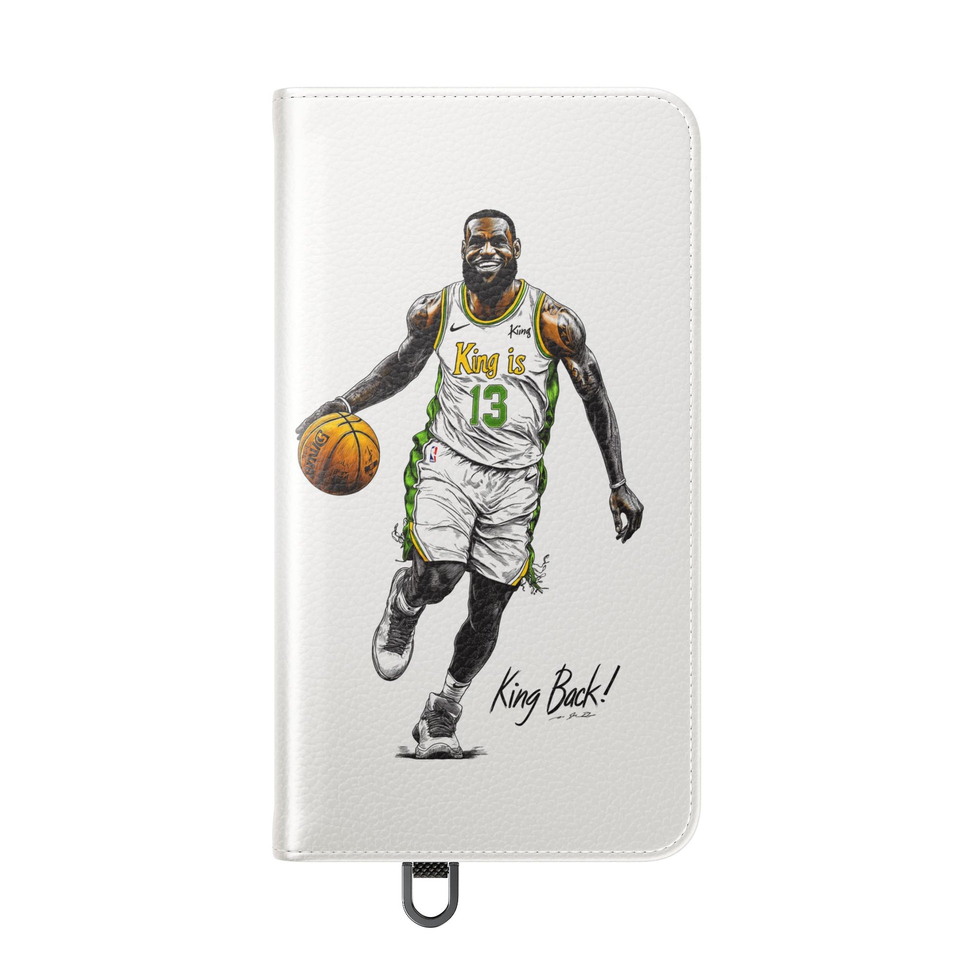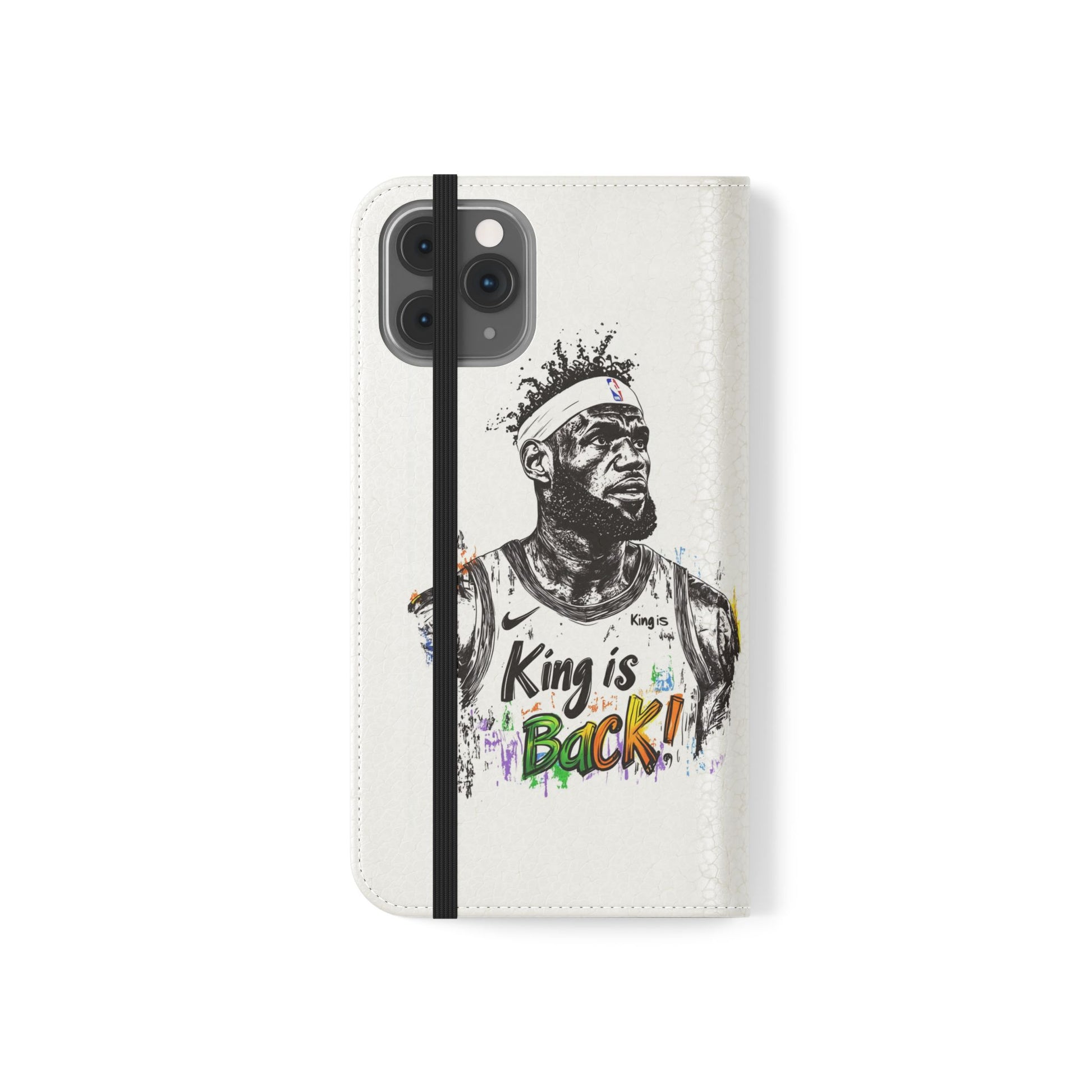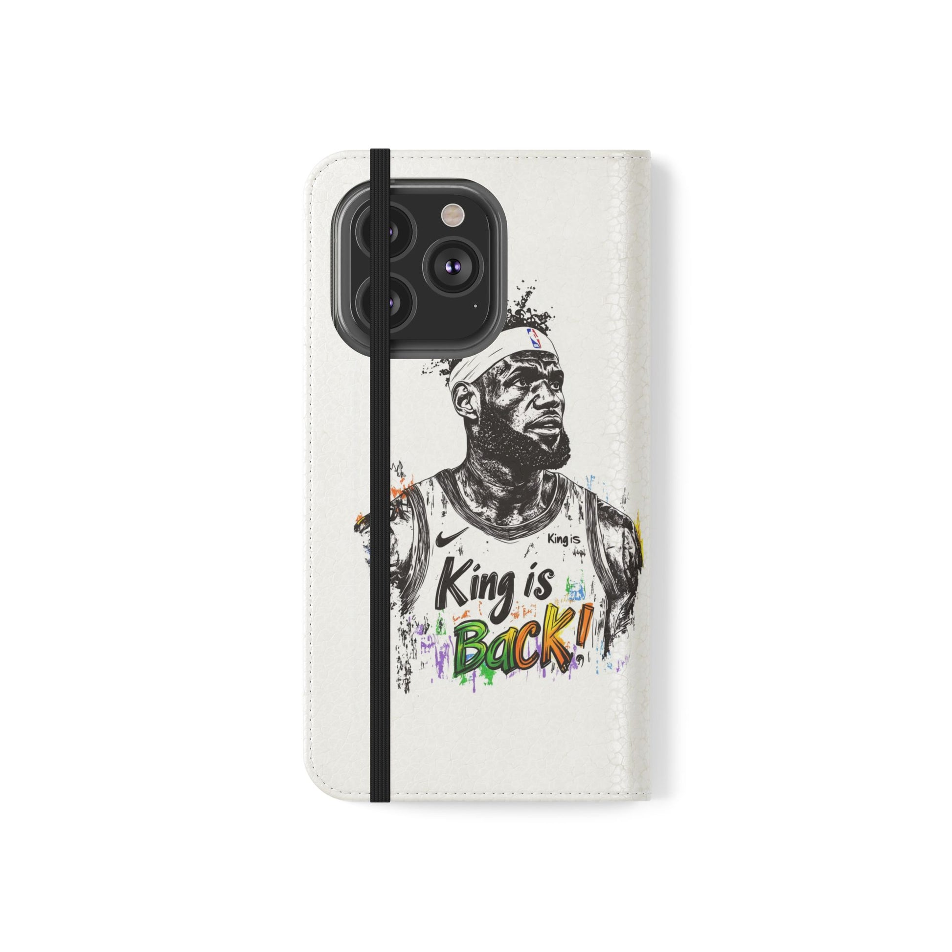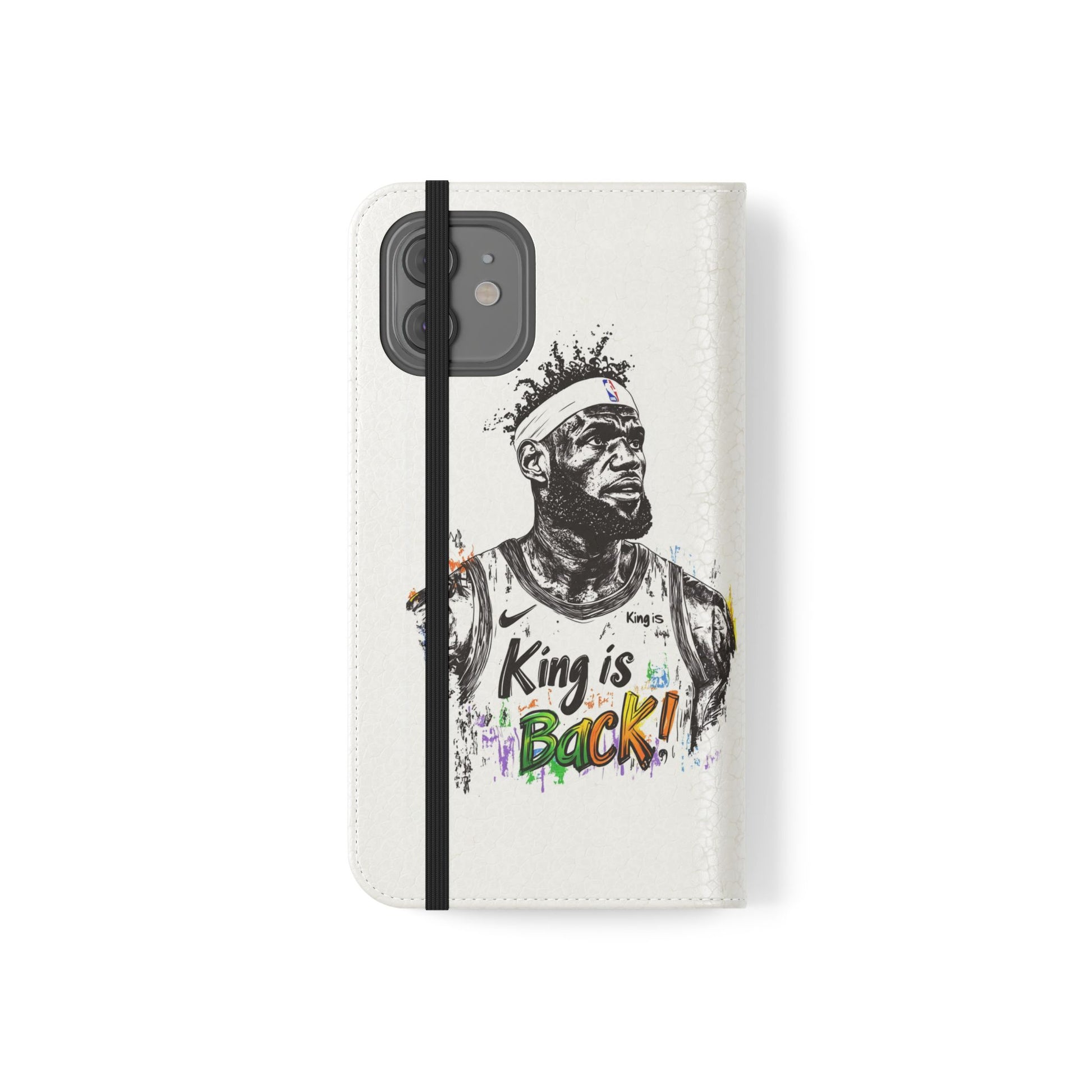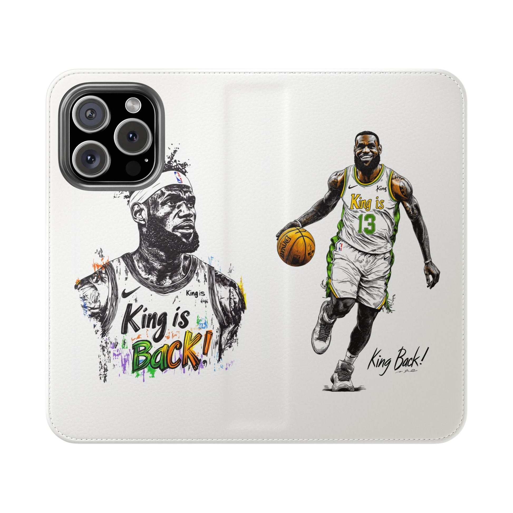 NBA LeBron James Flip Cases for Basketball Fans, featuring a King is Back design. Durable faux leather phone cover with convenient compartments for storing cards and cash. Perfect gift for him, ideal for athletic accessories. Relevant for NBA and basketball enthusiasts, suitable for birthdays, Father's Day, and sports celebrations.