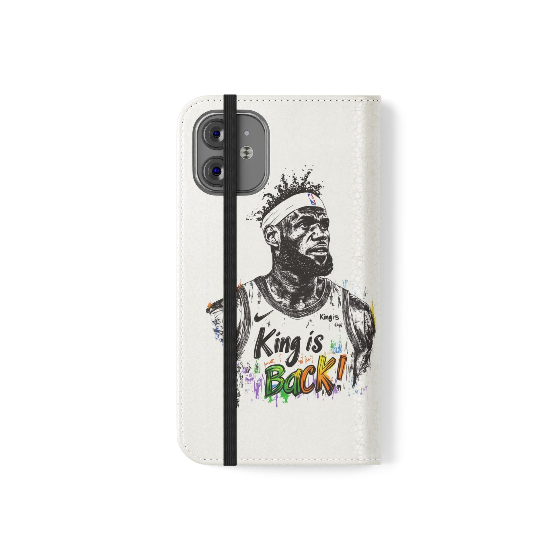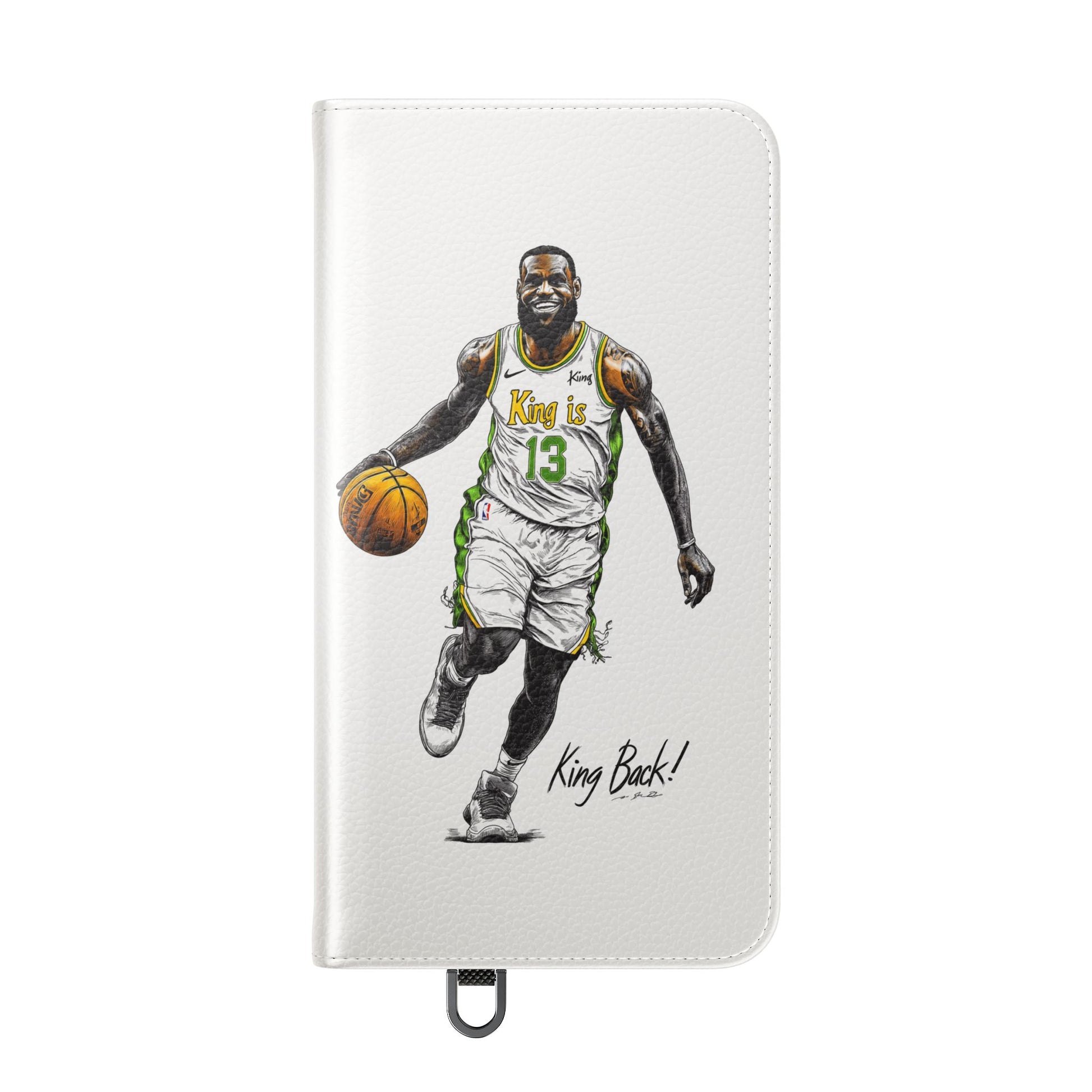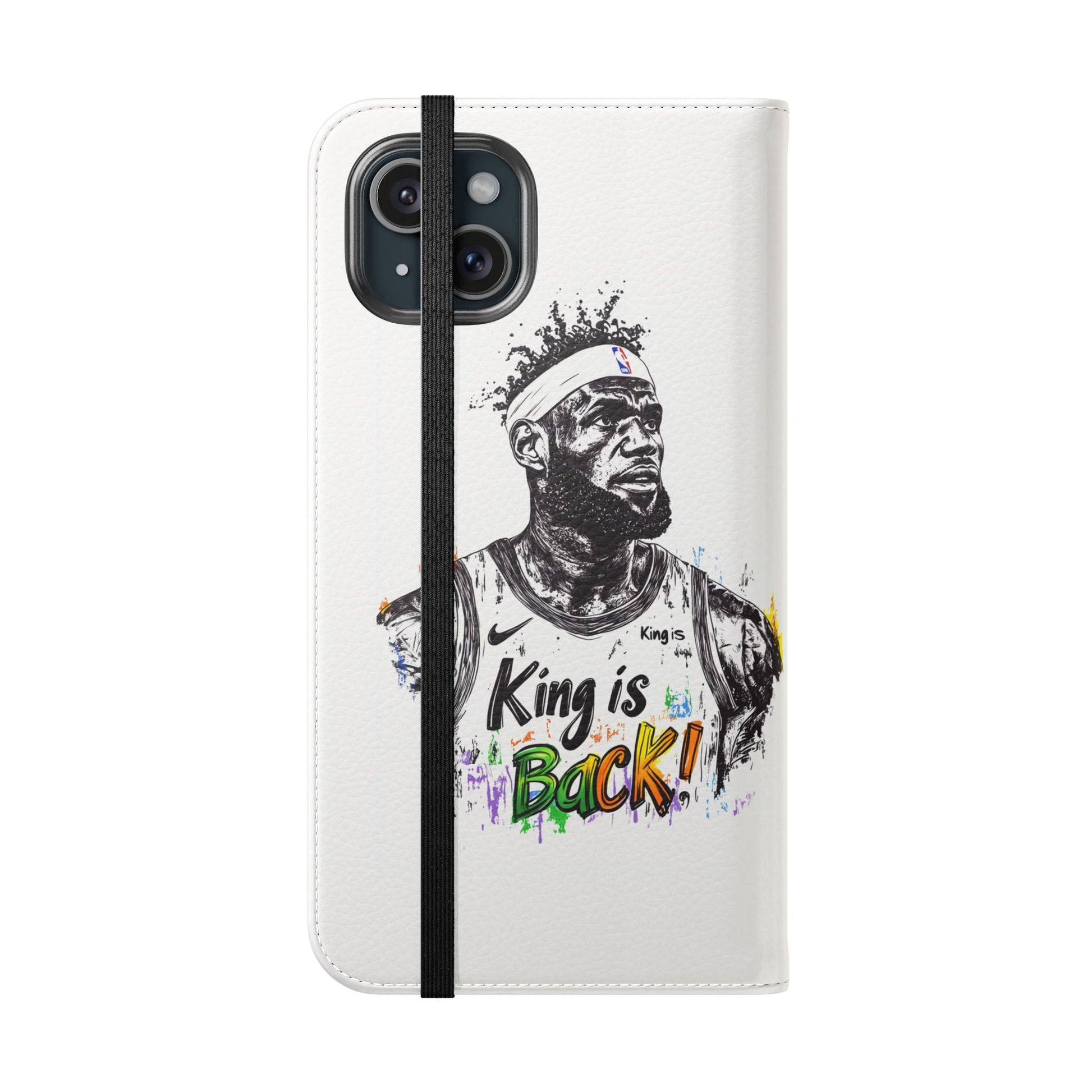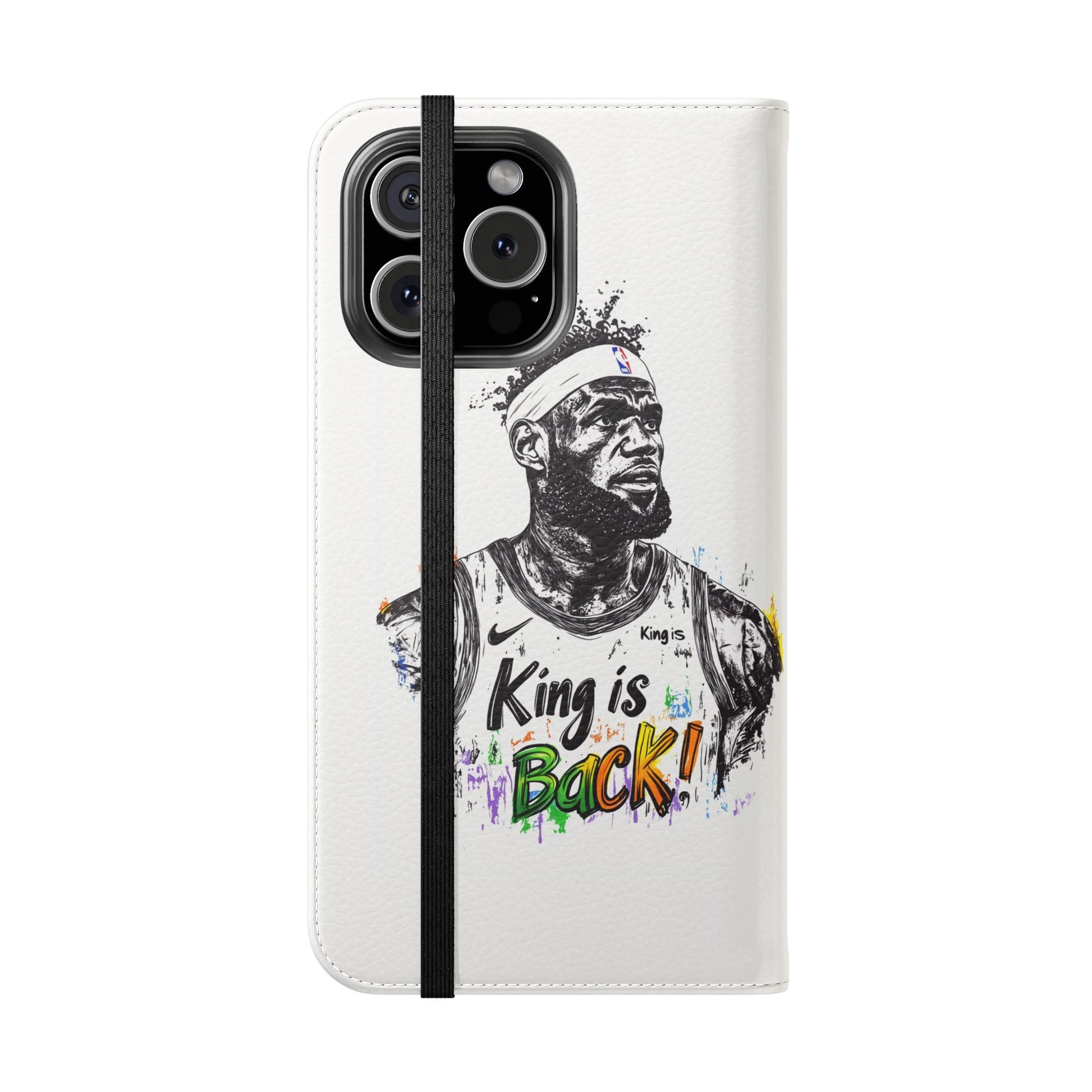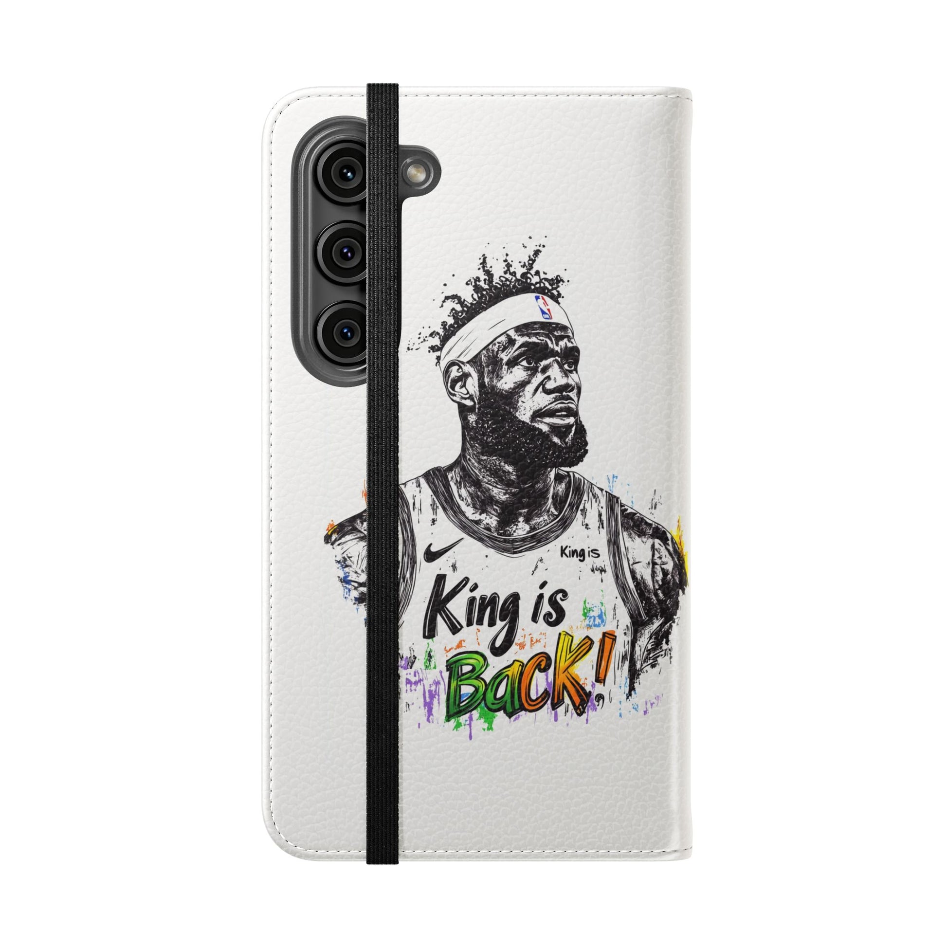 NBA LeBron James Flip Cases for Basketball Fans, featuring a King is Back design. Durable faux leather phone cover with convenient compartments for storing cards and cash. Perfect gift for him, ideal for athletic accessories. Relevant for NBA and basketball enthusiasts, suitable for birthdays, Father's Day, and sports celebrations.