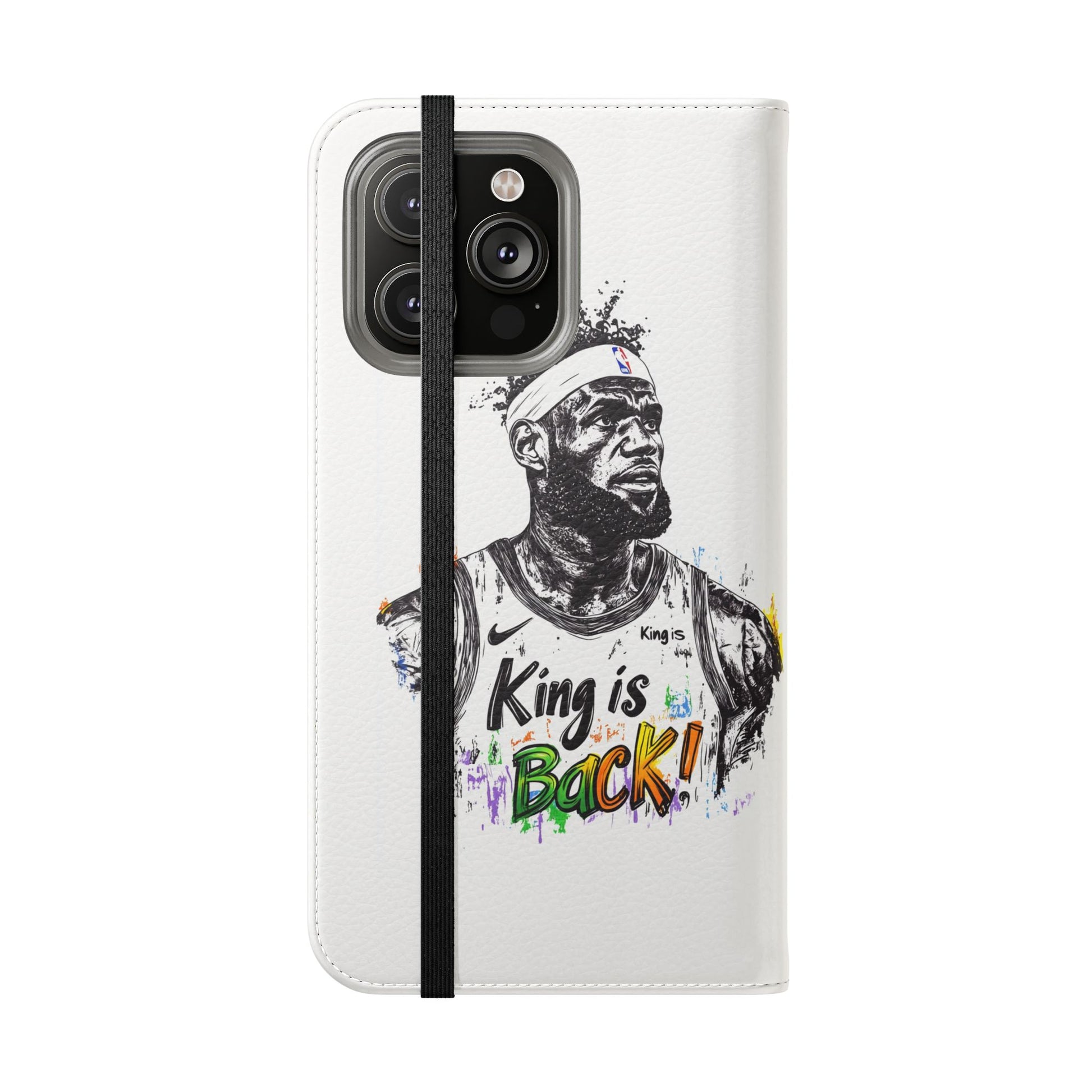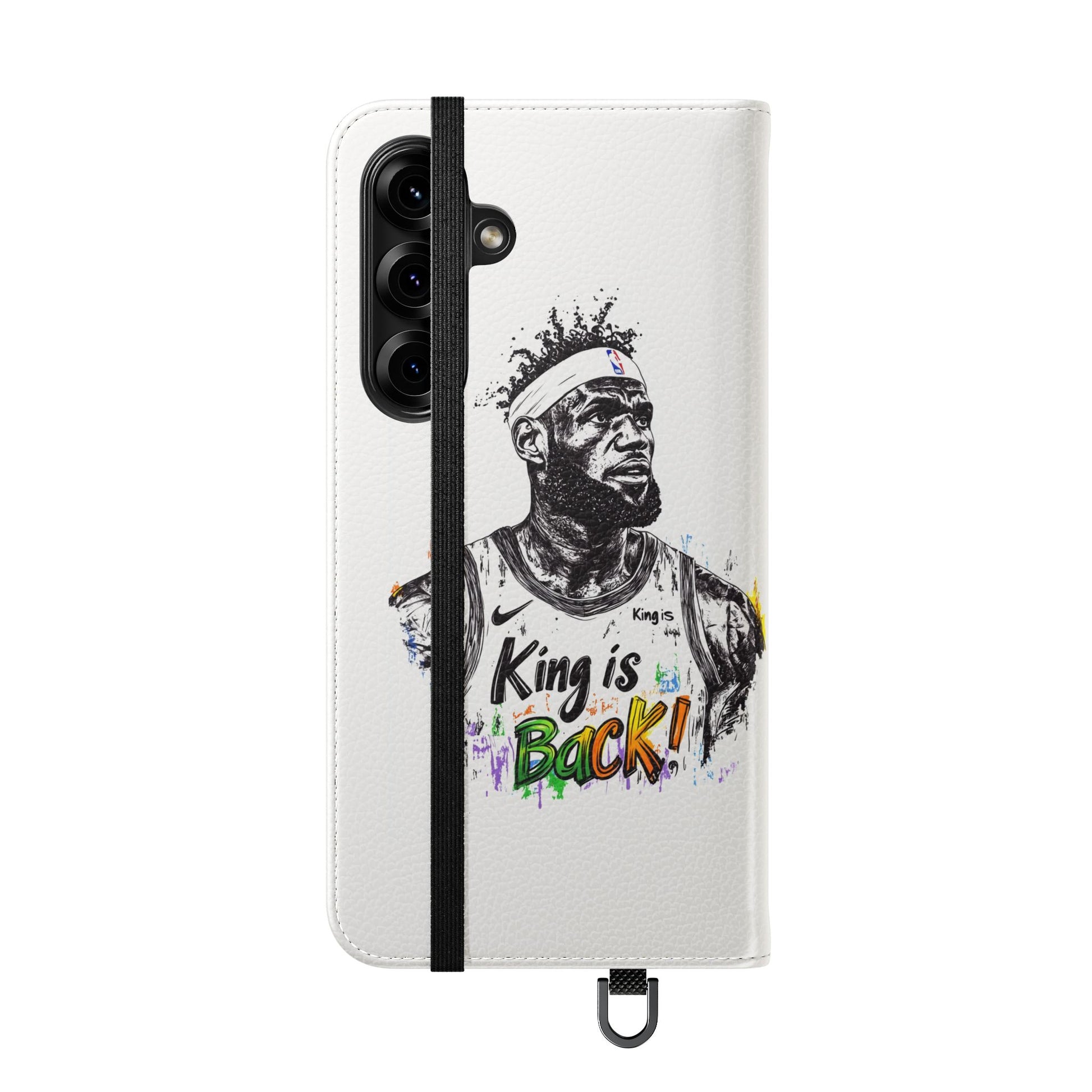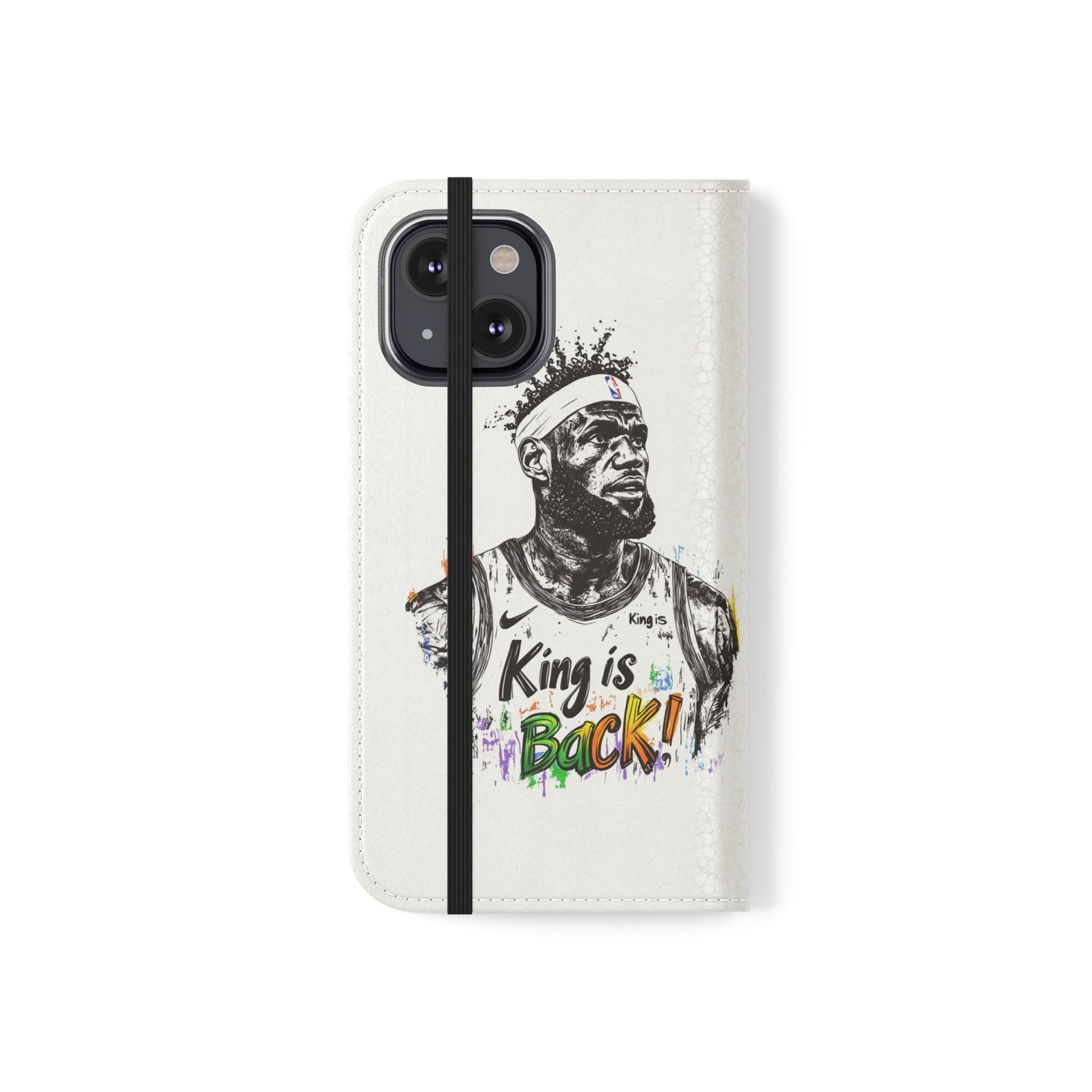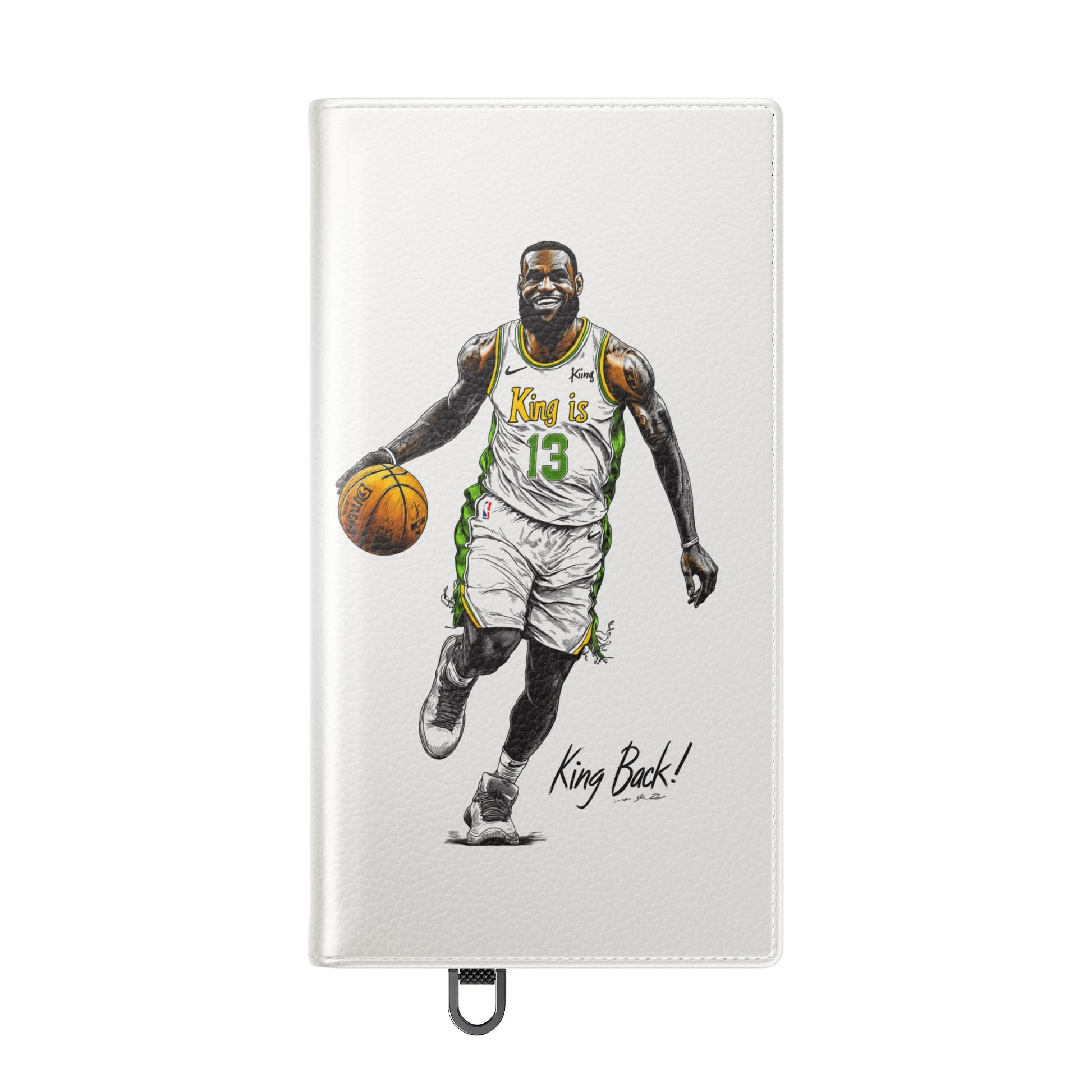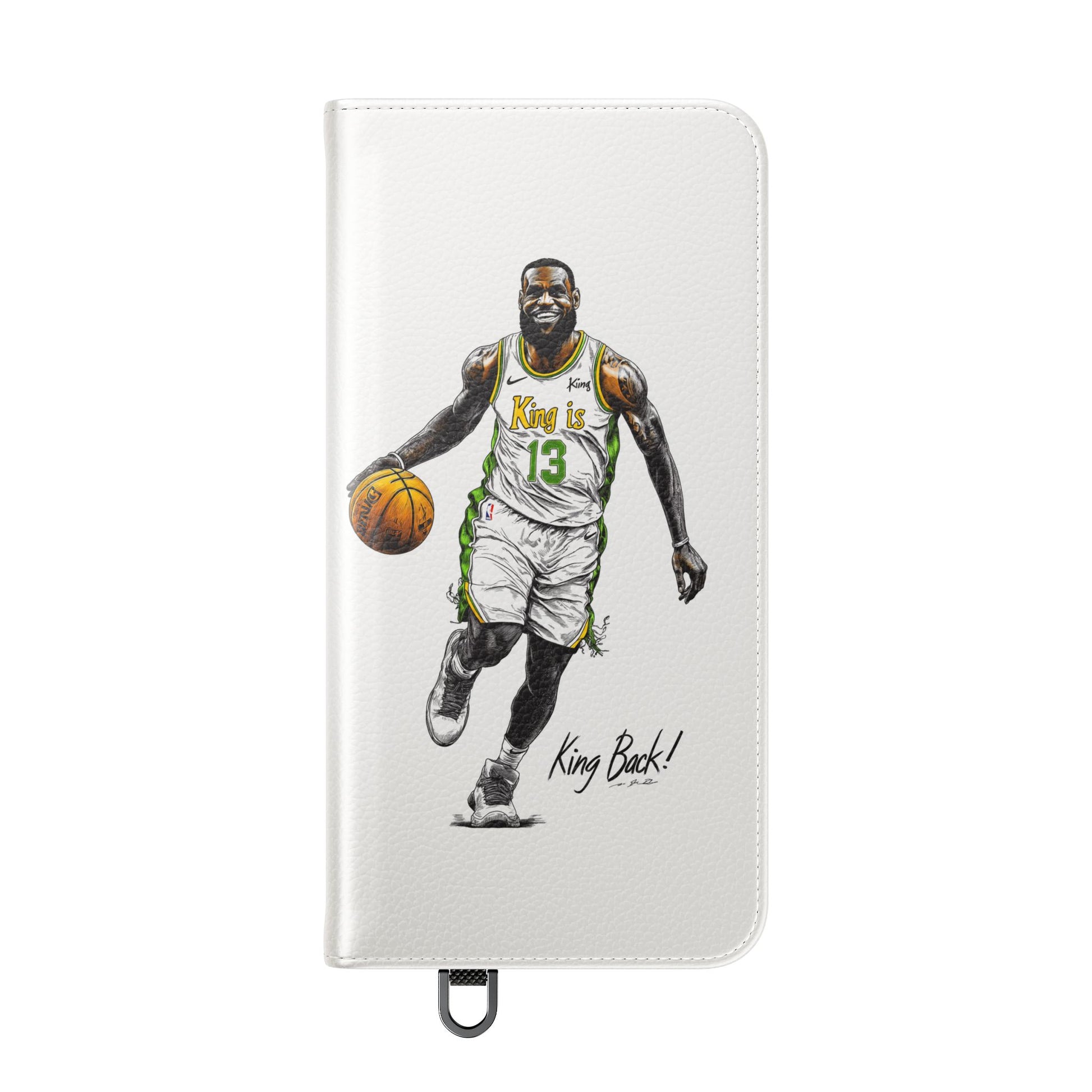 NBA LeBron James Flip Cases for Basketball Fans, featuring a King is Back design. Durable faux leather phone cover with convenient compartments for storing cards and cash. Perfect gift for him, ideal for athletic accessories. Relevant for NBA and basketball enthusiasts, suitable for birthdays, Father's Day, and sports celebrations.