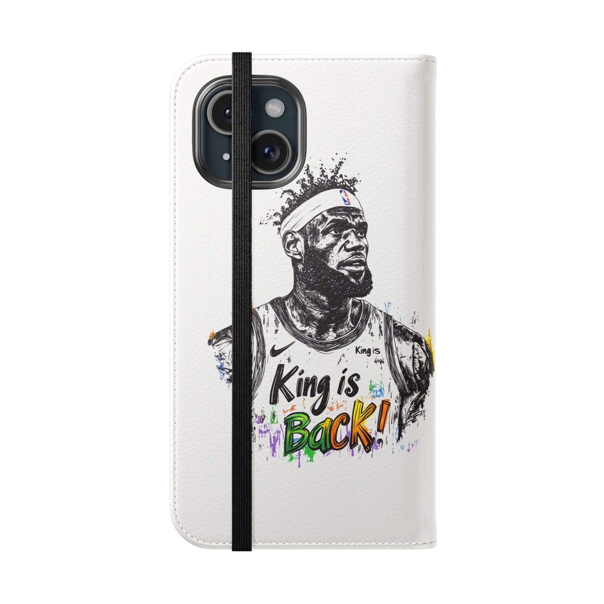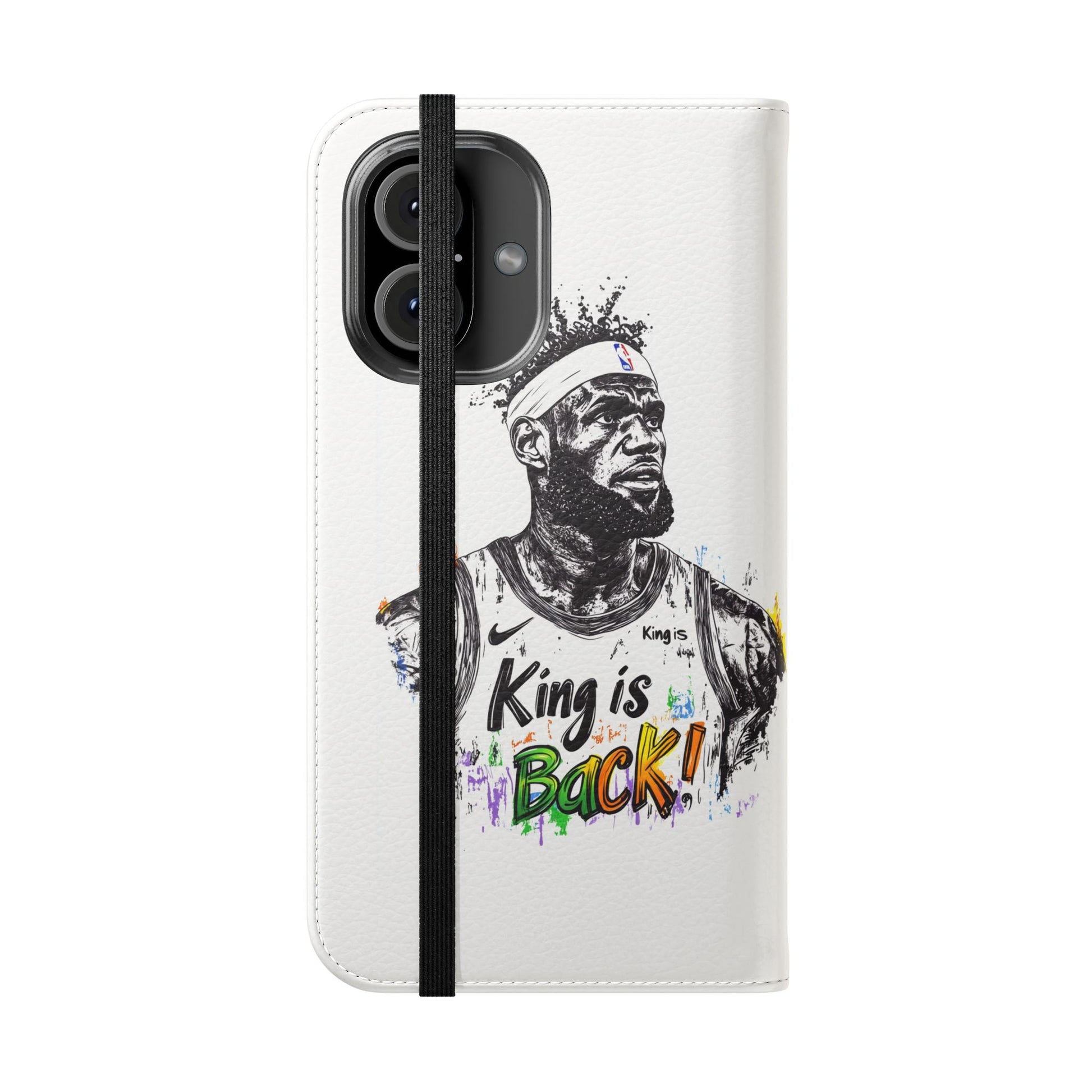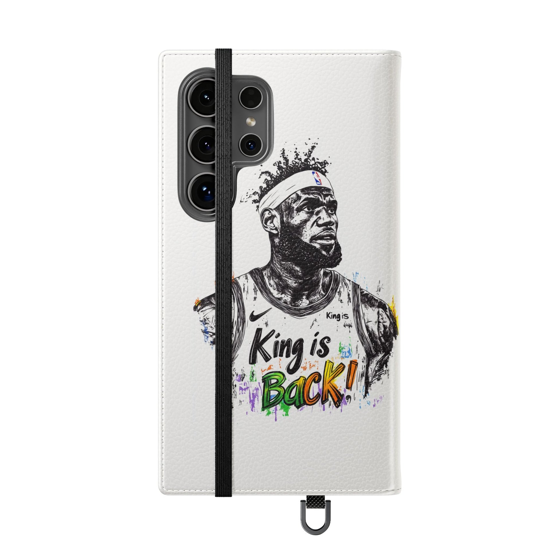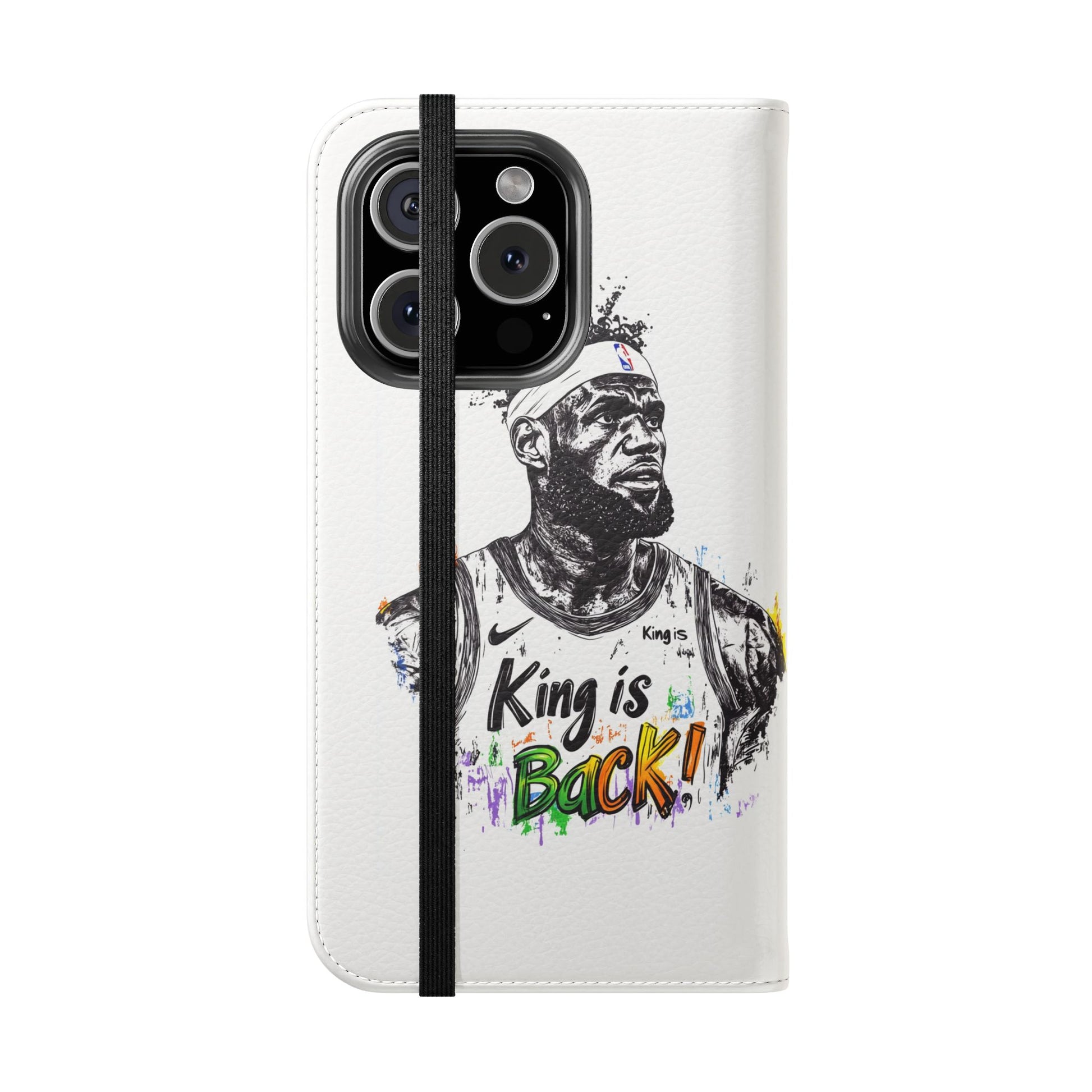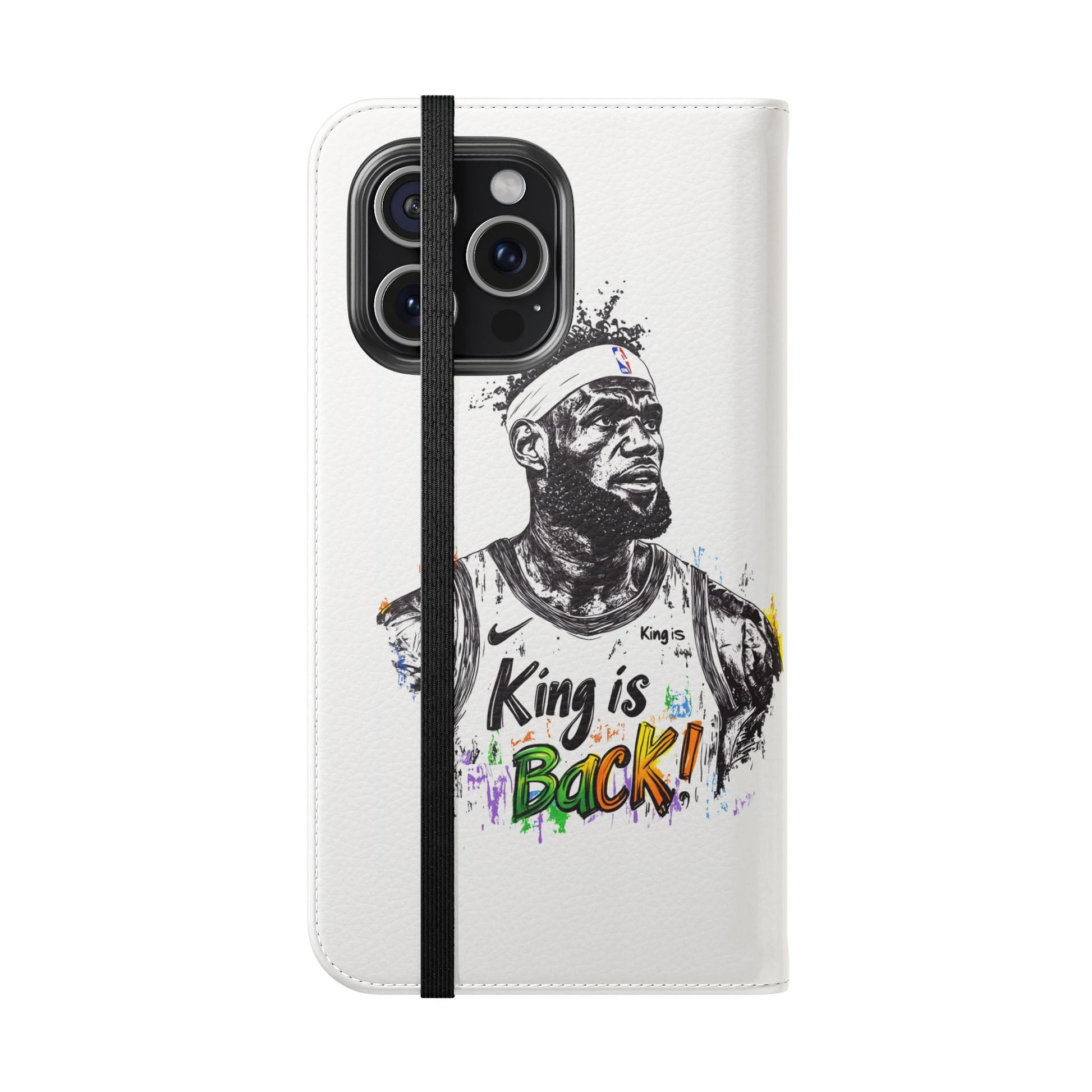 NBA LeBron James Flip Cases for Basketball Fans, featuring a King is Back design. Durable faux leather phone cover with convenient compartments for storing cards and cash. Perfect gift for him, ideal for athletic accessories. Relevant for NBA and basketball enthusiasts, suitable for birthdays, Father's Day, and sports celebrations.