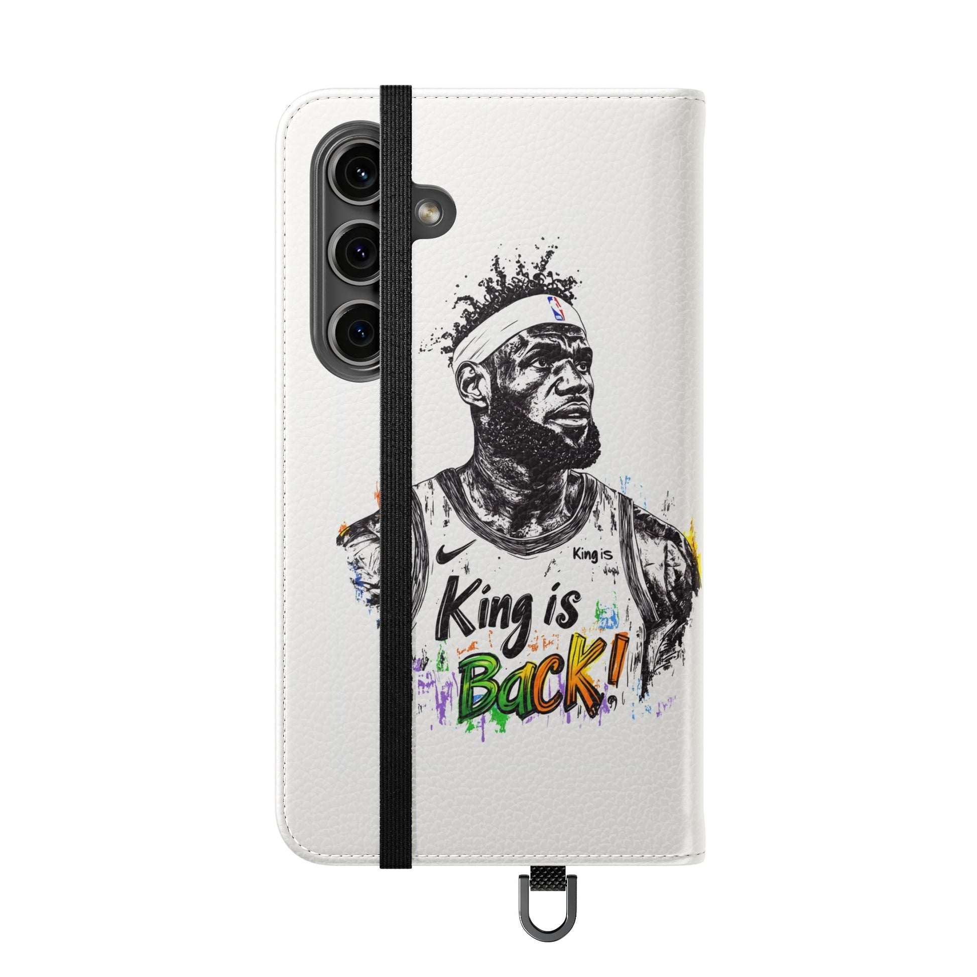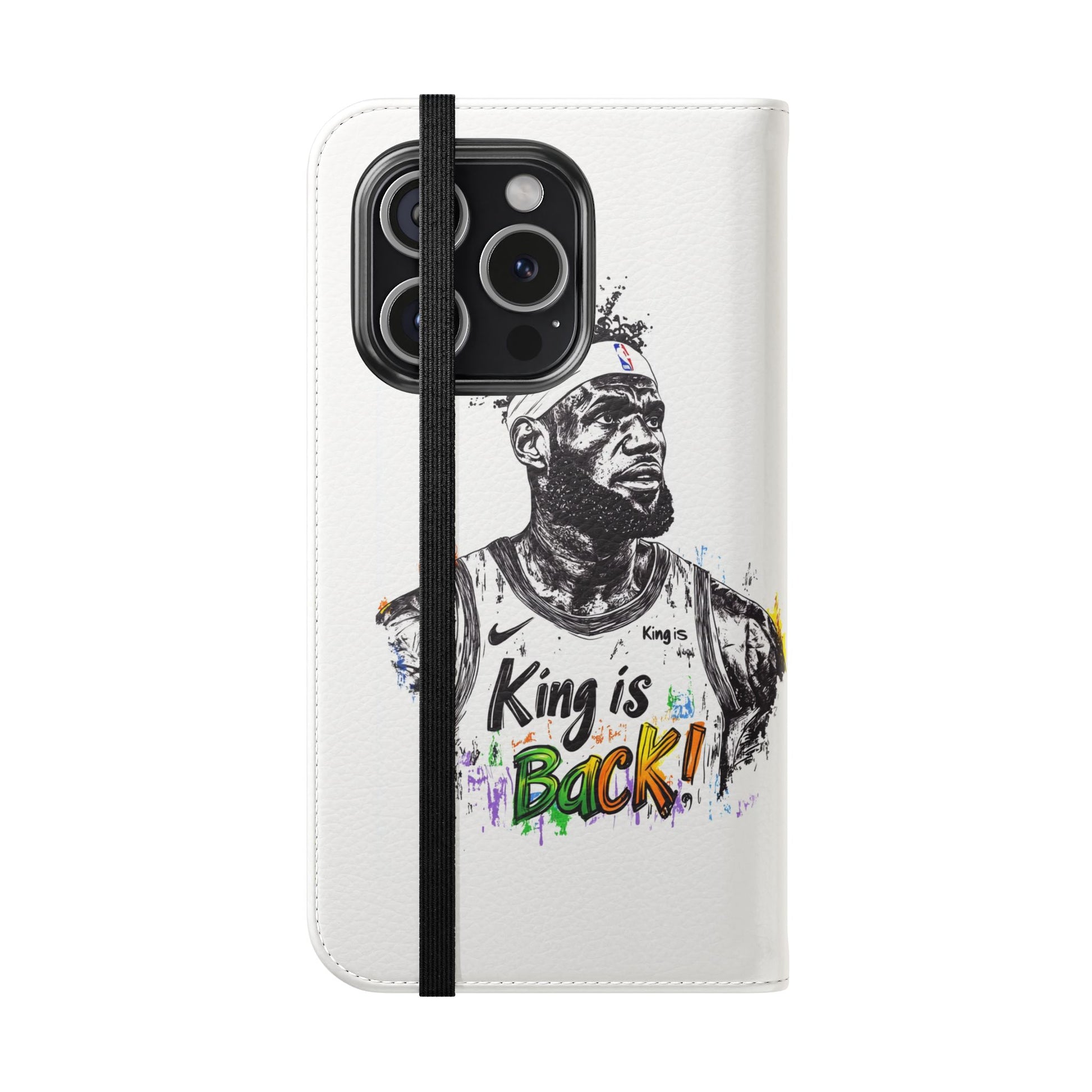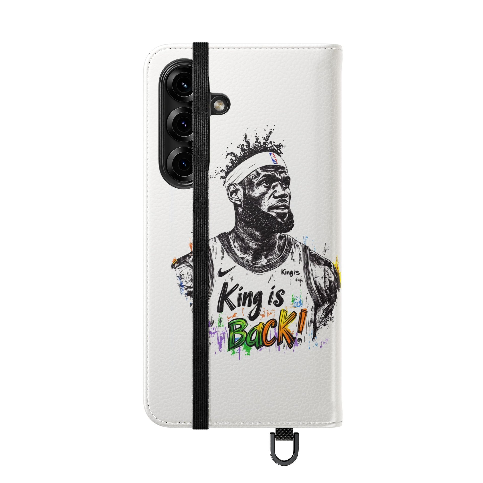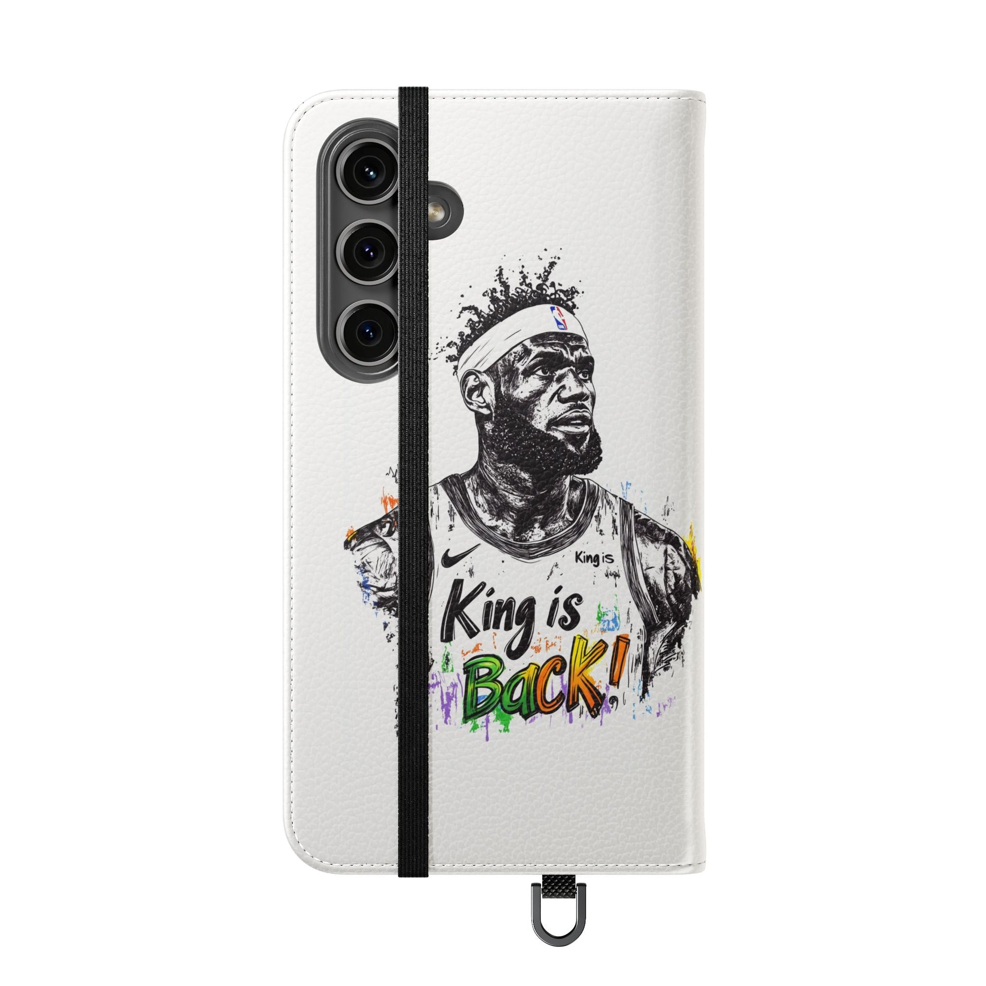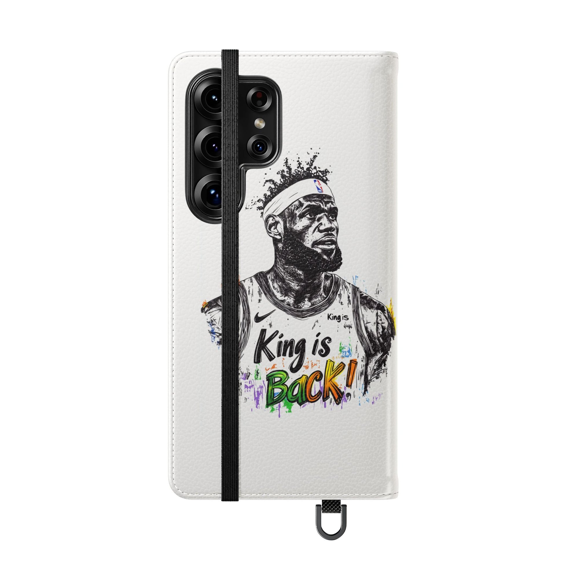 NBA LeBron James Flip Cases for Basketball Fans, featuring a King is Back design. Durable faux leather phone cover with convenient compartments for storing cards and cash. Perfect gift for him, ideal for athletic accessories. Relevant for NBA and basketball enthusiasts, suitable for birthdays, Father's Day, and sports celebrations.