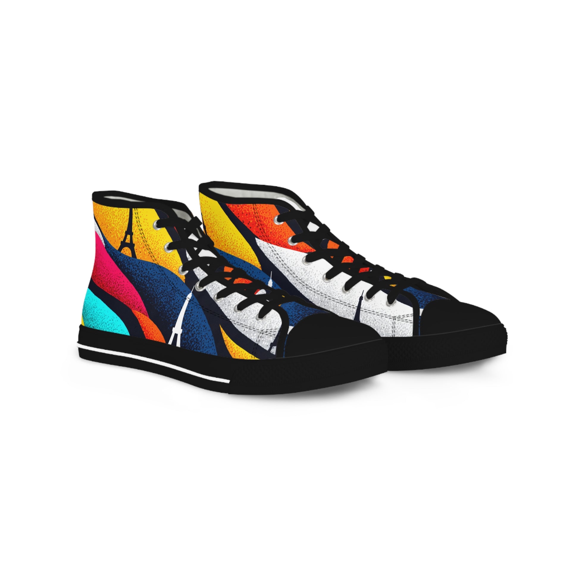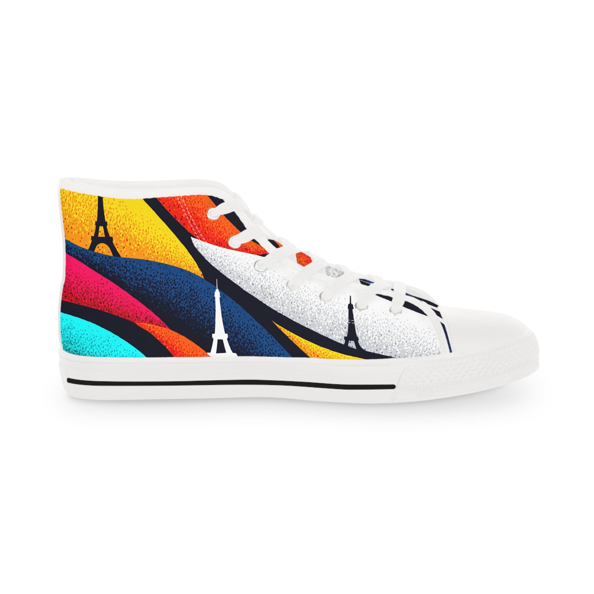 These romantic Eiffel Tower rainbow color-blocked canvas sneakers make the perfect love gift. The fine weave texture fabric and foamed lining ensure a super soft and comfortable wearing experience. Perfect for those who love unique, colorful designs and want to show off their romantic side. Ideal for Valentine's Day, anniversaries, or as a special gift for a loved one.