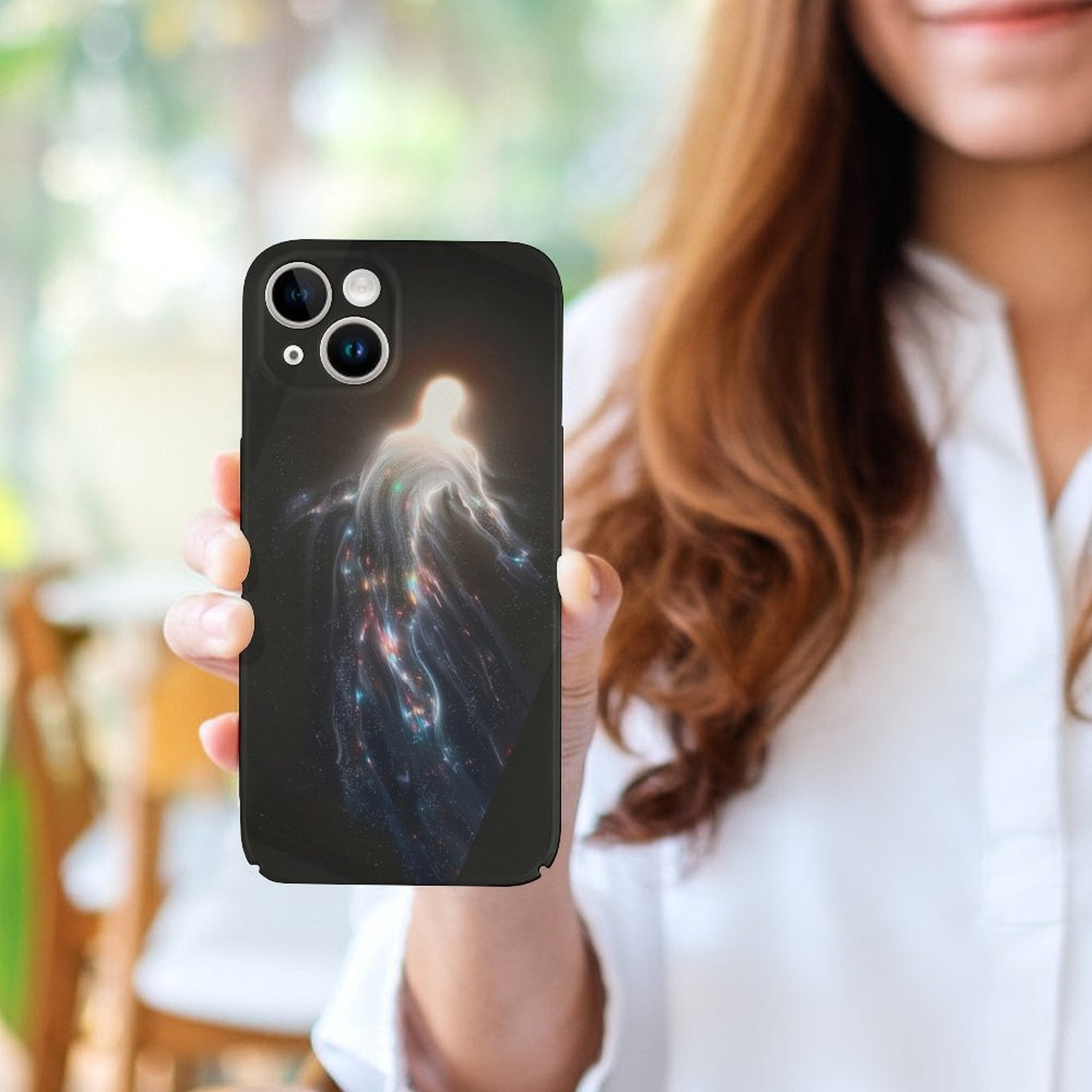 Ethereal and otherworldly, this iPhone 15 case features a luminous spirit formed by cascading light particles—like a soul traversing galaxies. With a meditative and cosmic vibe, it's perfect for introspective Scorpios and curious, quick-minded Geminis. A favorite among Gen Z spiritual seekers and digital creatives aged 20–35.