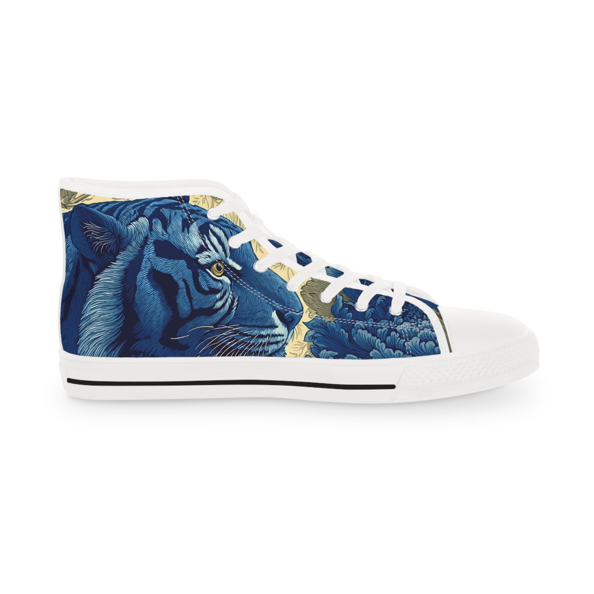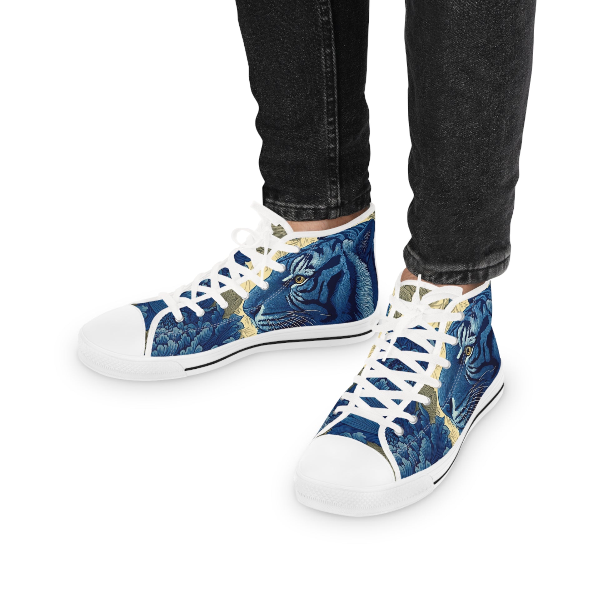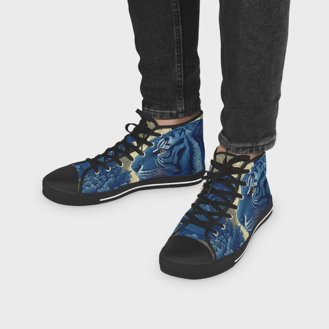 These tiger print high top sneakers are a stylish and comfortable choice for any man looking to add some edge to their street style. The breathable polyester canvas and pleather round toe provide durability and comfort, while the EVA insole offers shock absorption and flexibility. Perfect for casual wear or making a statement at music festivals and urban events.