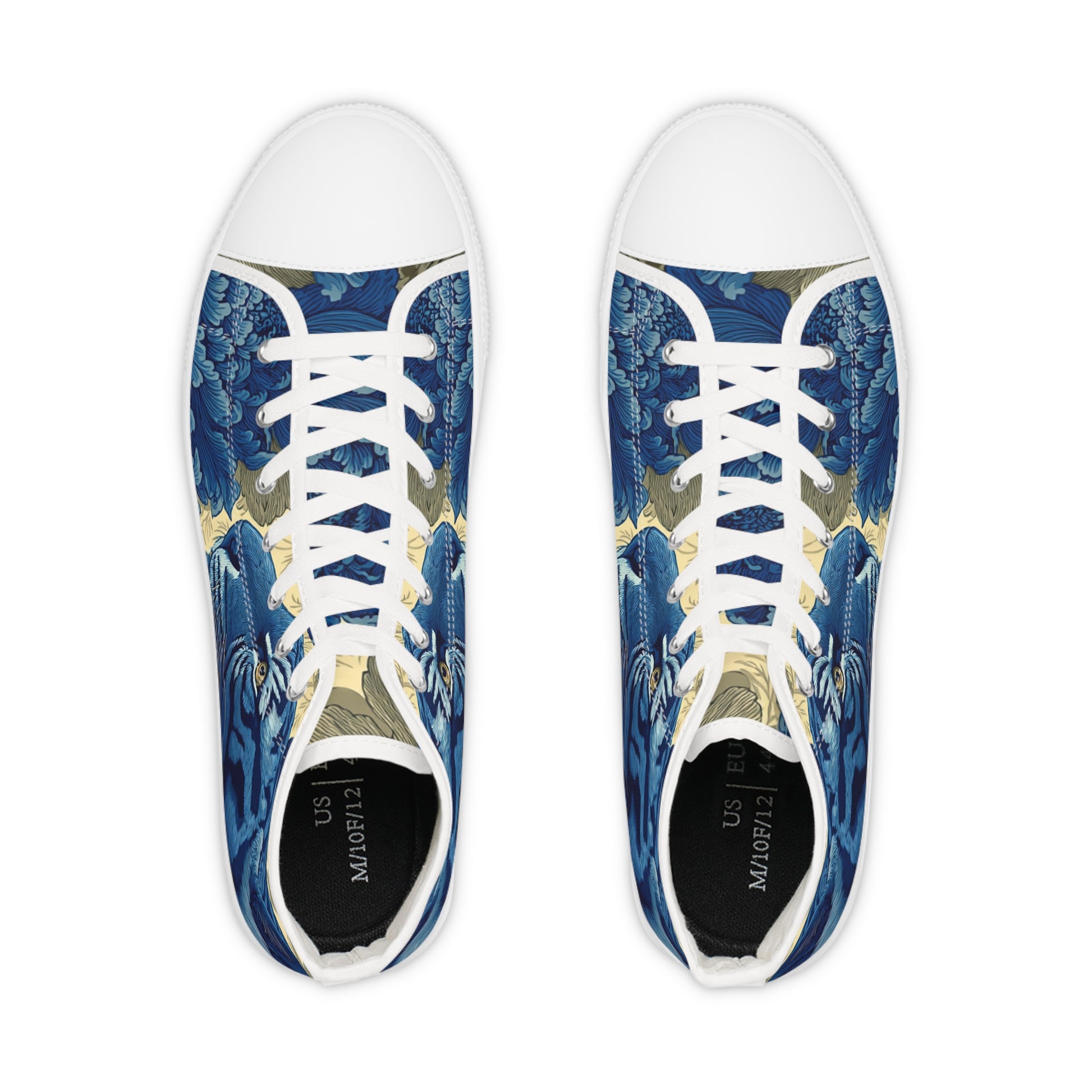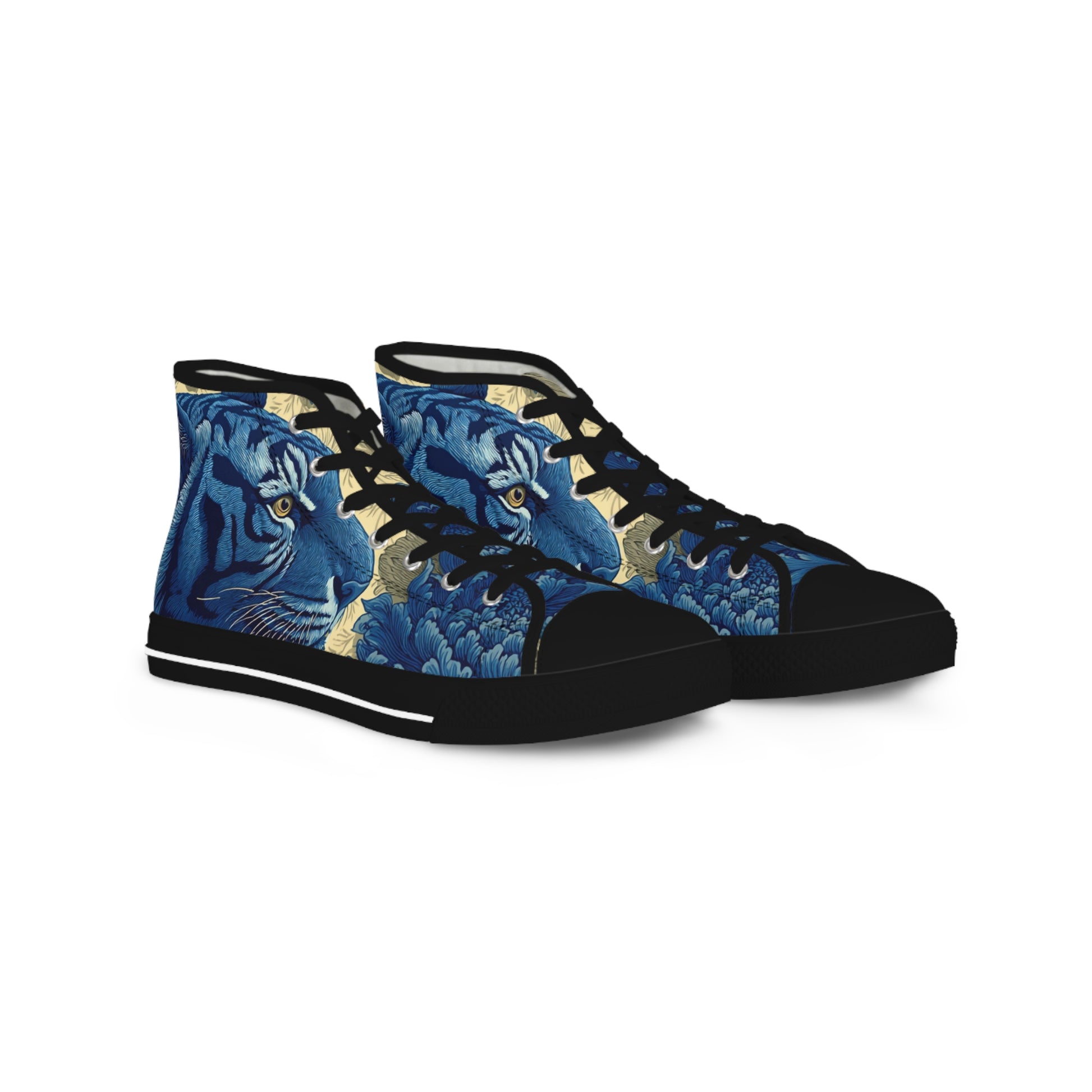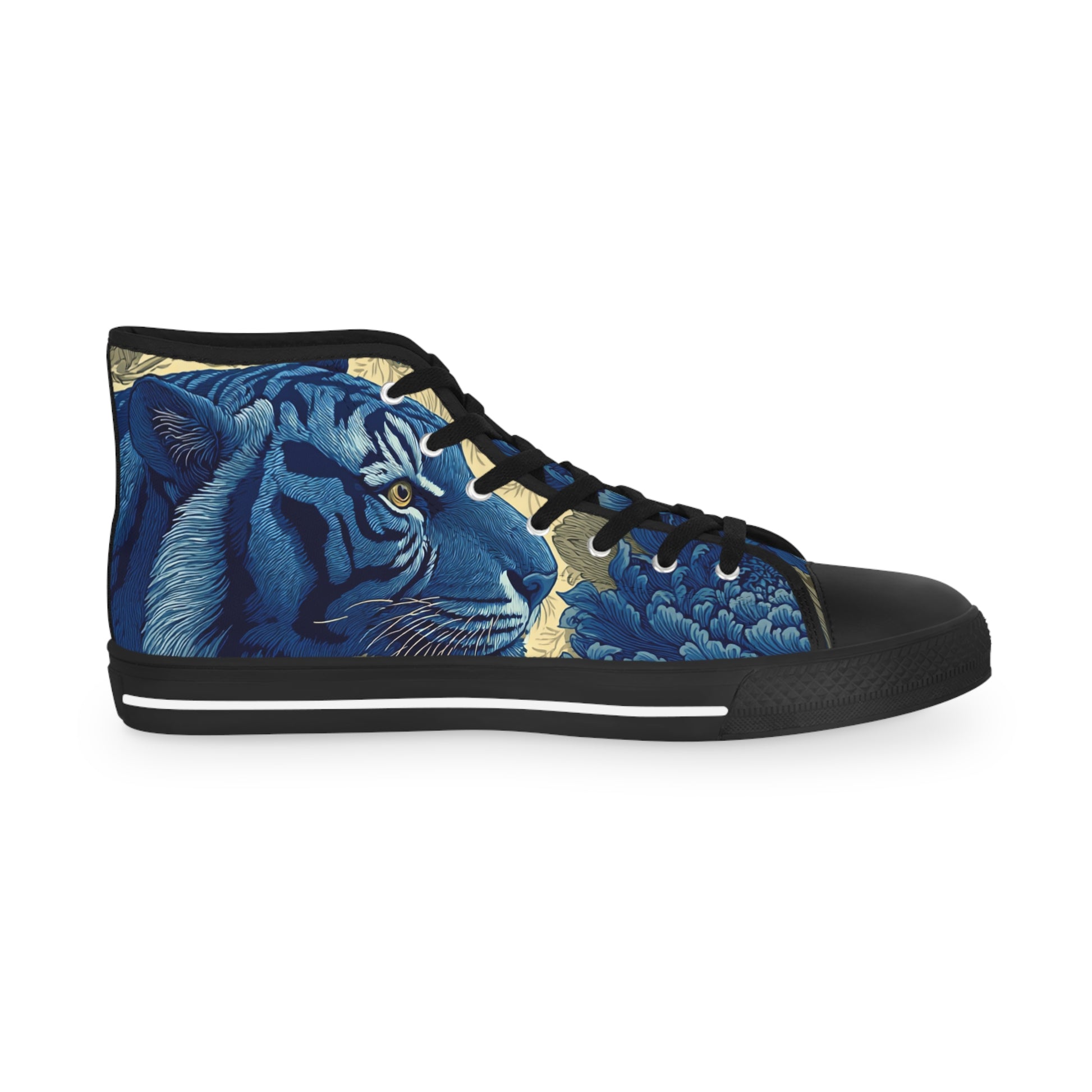 These tiger print high top sneakers are a stylish and comfortable choice for any man looking to add some edge to their street style. The breathable polyester canvas and pleather round toe provide durability and comfort, while the EVA insole offers shock absorption and flexibility. Perfect for casual wear or making a statement at music festivals and urban events.
