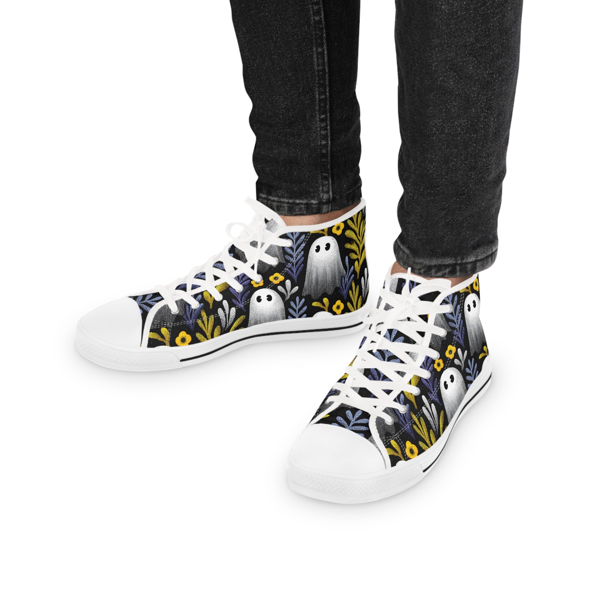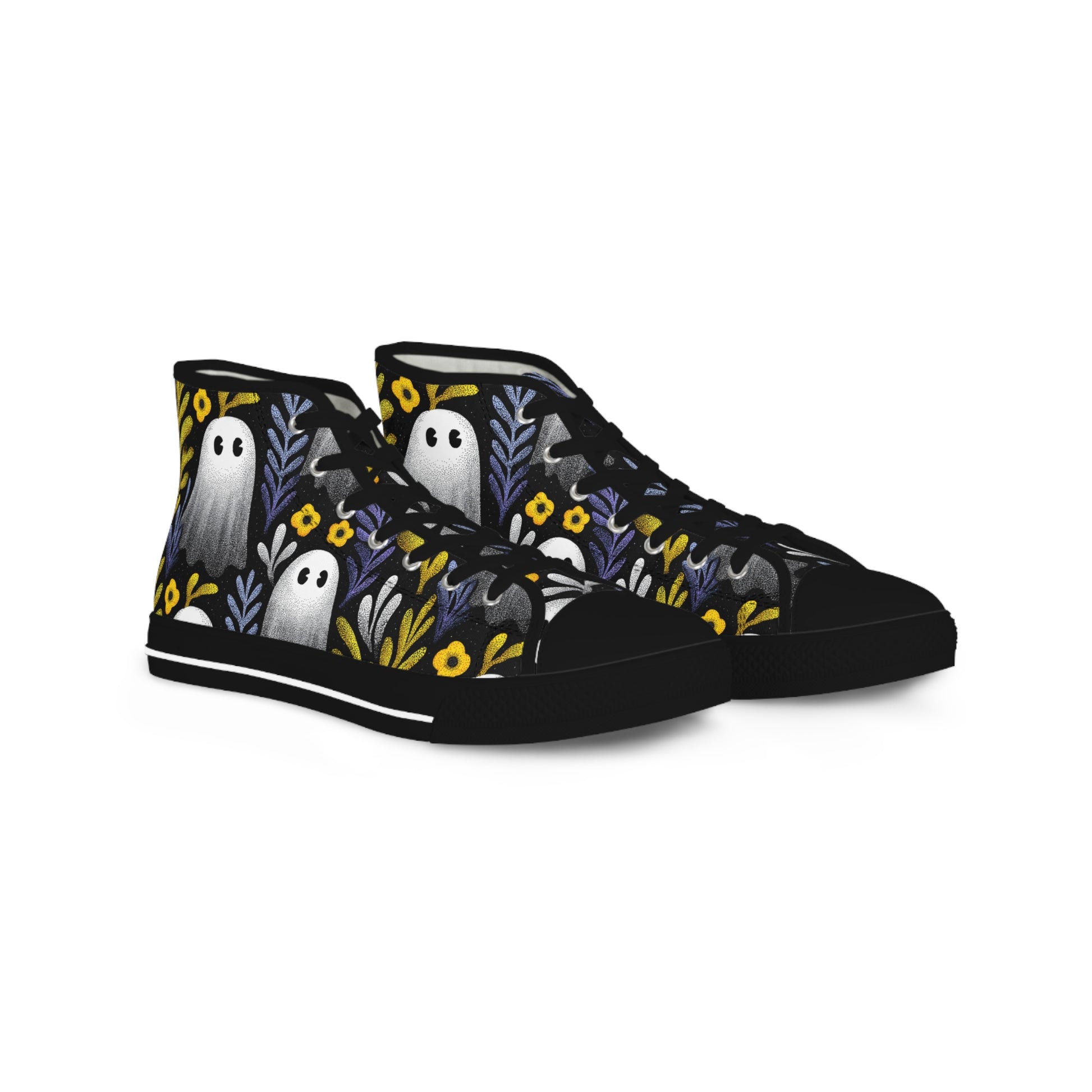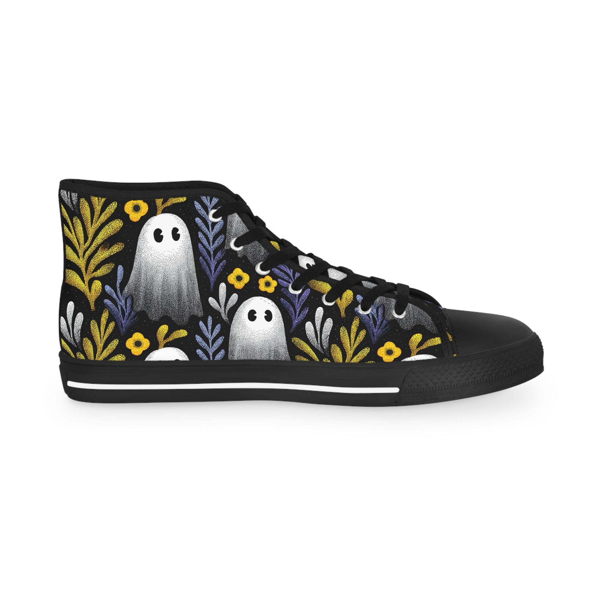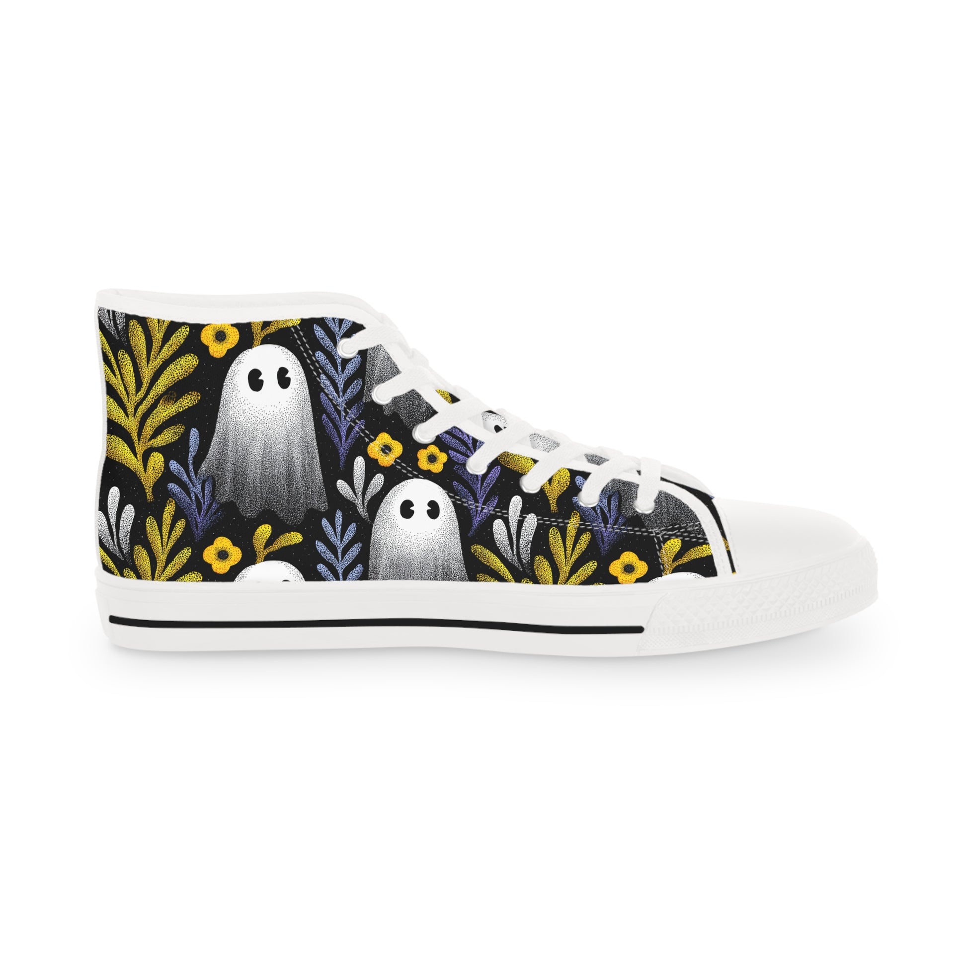 Step into a whimsical ghost garden with these Playful Ghost High Tops. The black canvas is brought to life with adorable white spirits and golden blooms—perfect for Gen Z trendsetters who adore quirky, dark-academia vibes. Whether you're a dreamy Pisces or an art-loving Libra, these kicks are a must-have expression of your inner style. A hauntingly perfect Halloween gift for 18–30 year olds who crave something fun and original.