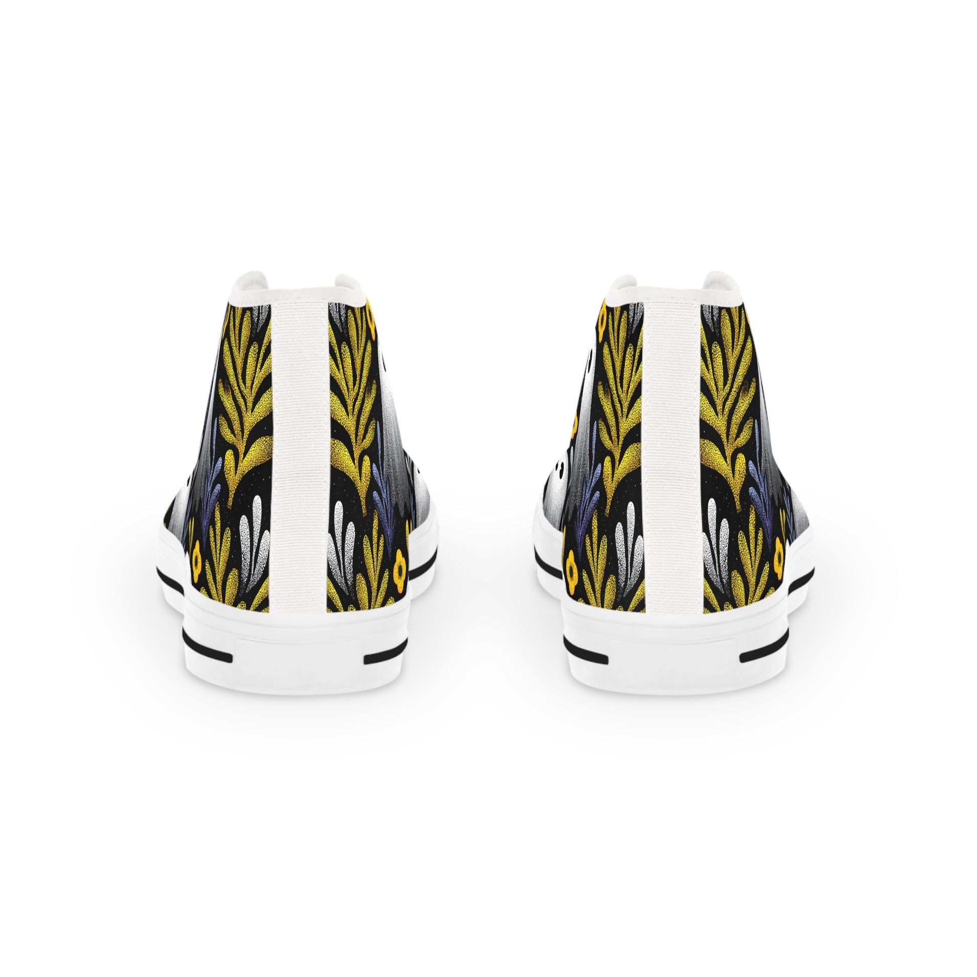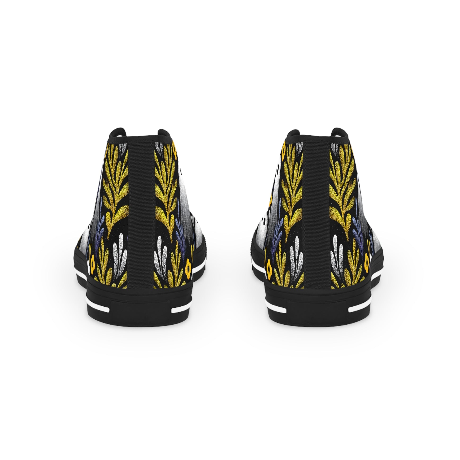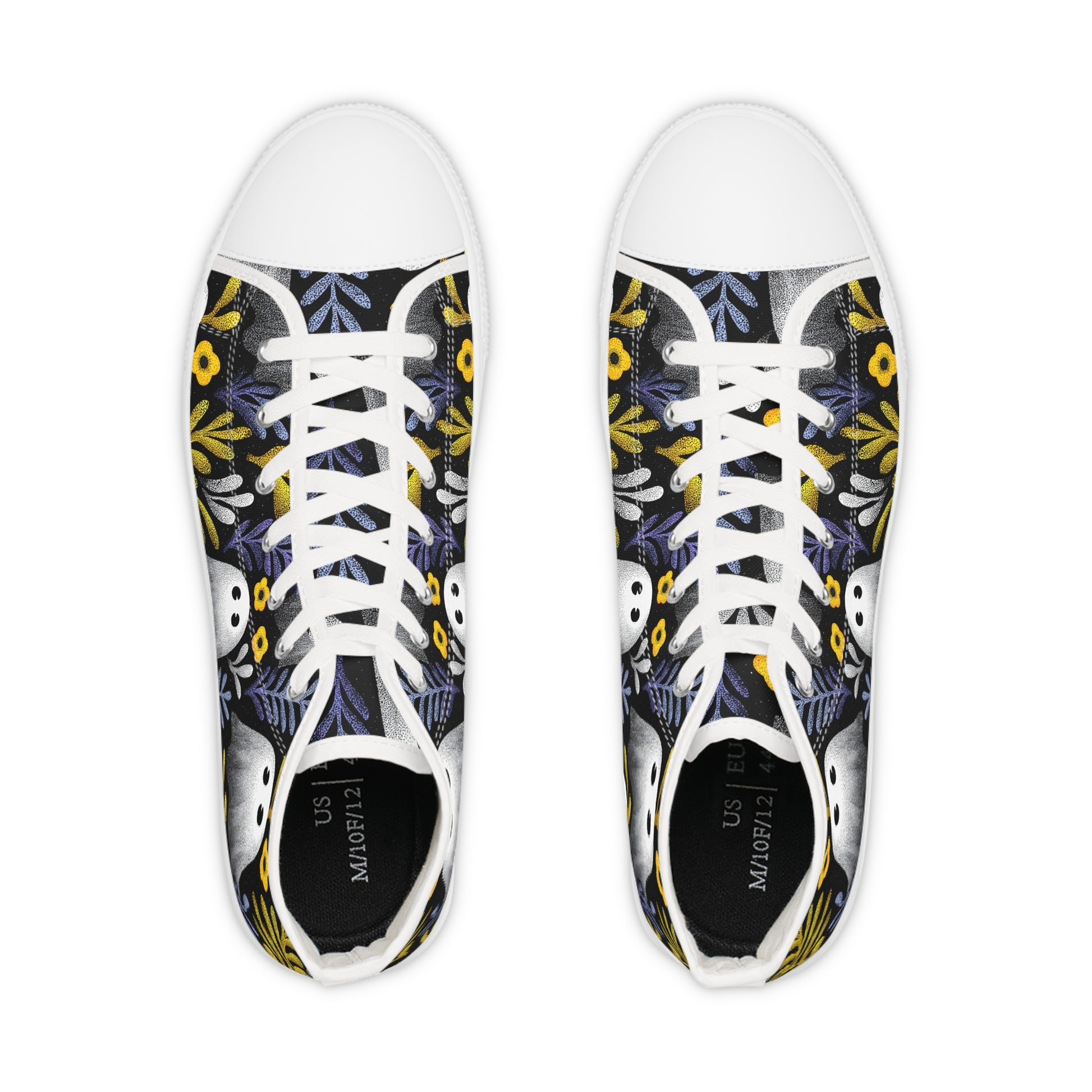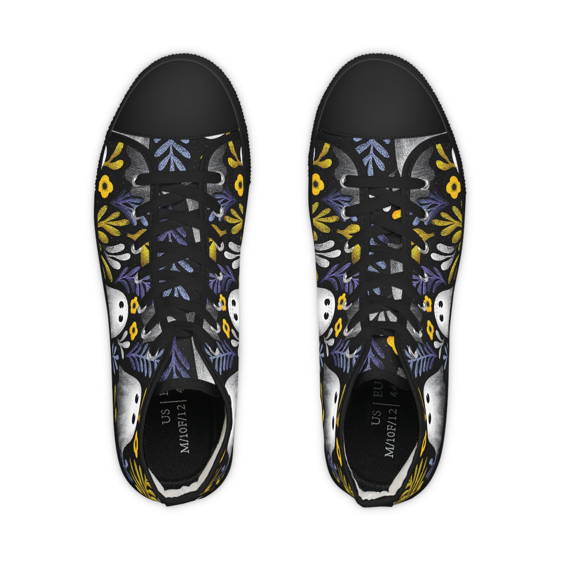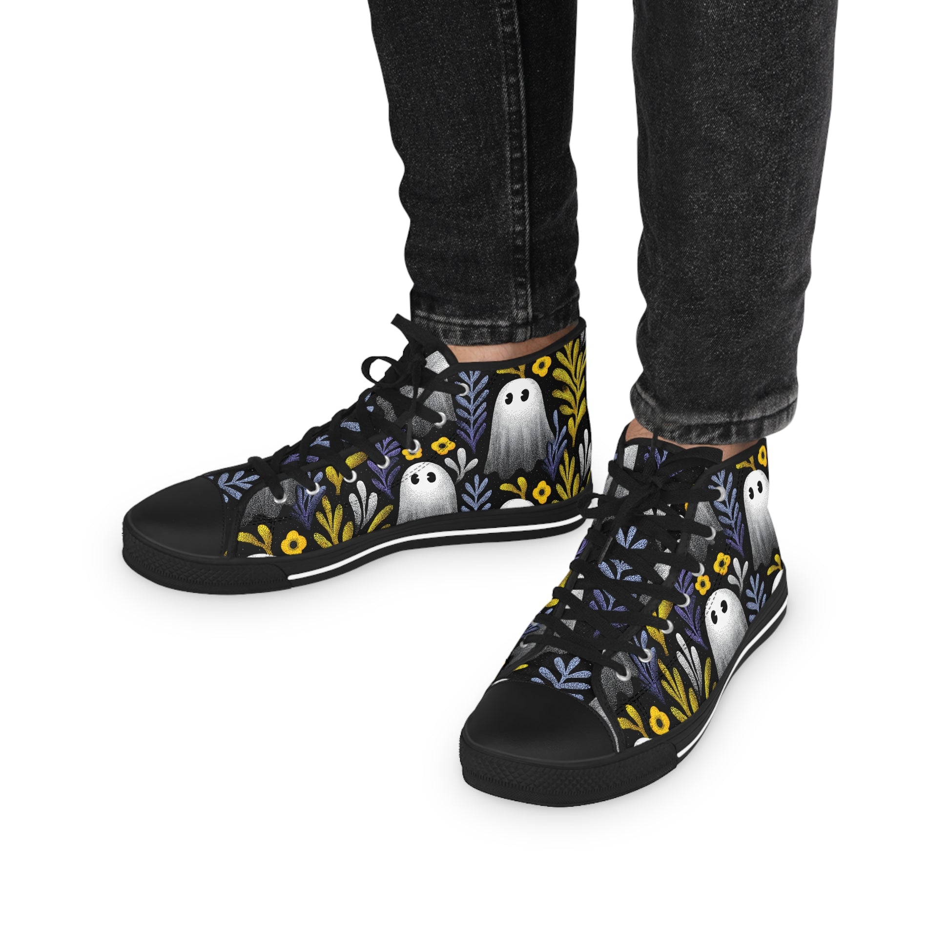 Step into a whimsical ghost garden with these Playful Ghost High Tops. The black canvas is brought to life with adorable white spirits and golden blooms—perfect for Gen Z trendsetters who adore quirky, dark-academia vibes. Whether you're a dreamy Pisces or an art-loving Libra, these kicks are a must-have expression of your inner style. A hauntingly perfect Halloween gift for 18–30 year olds who crave something fun and original.
