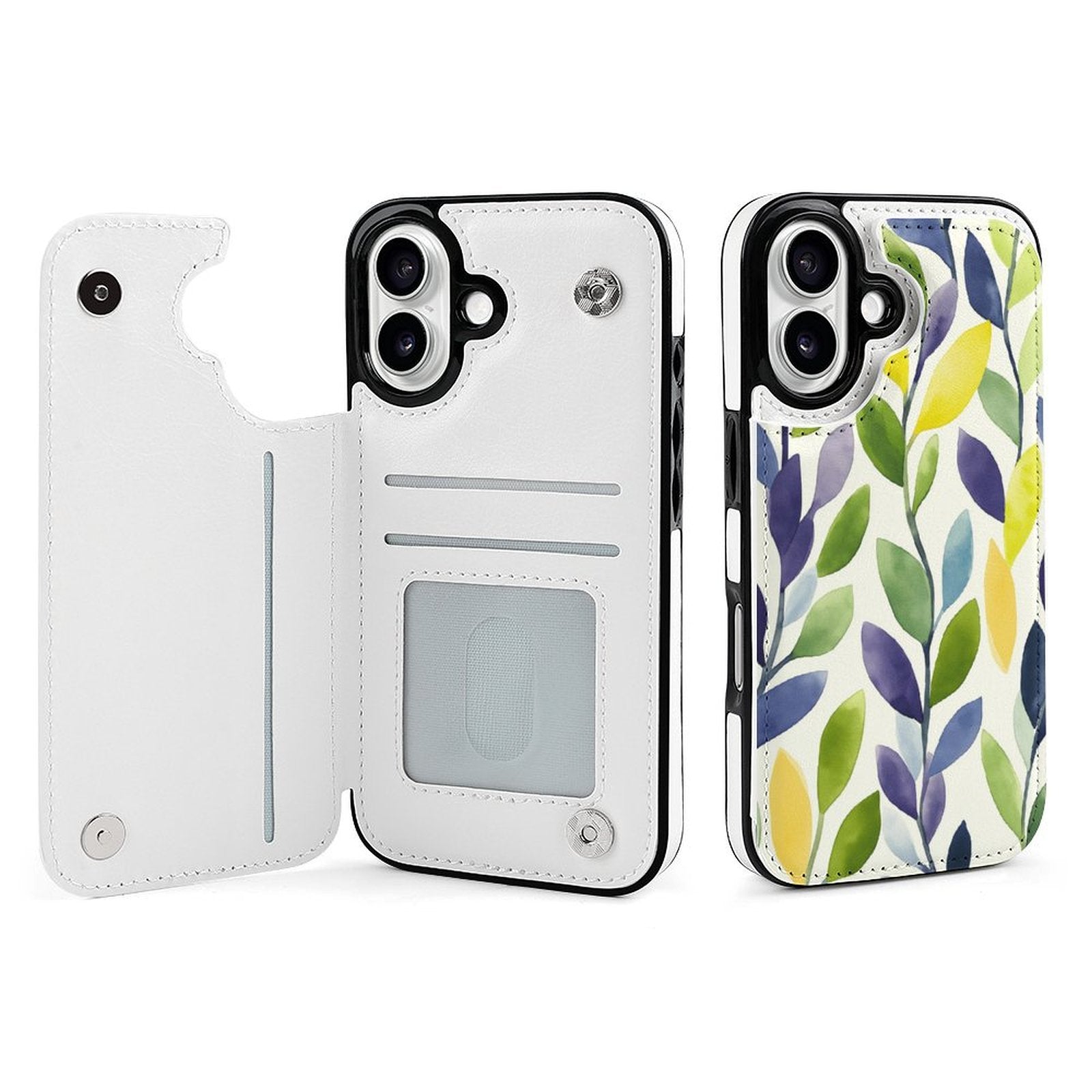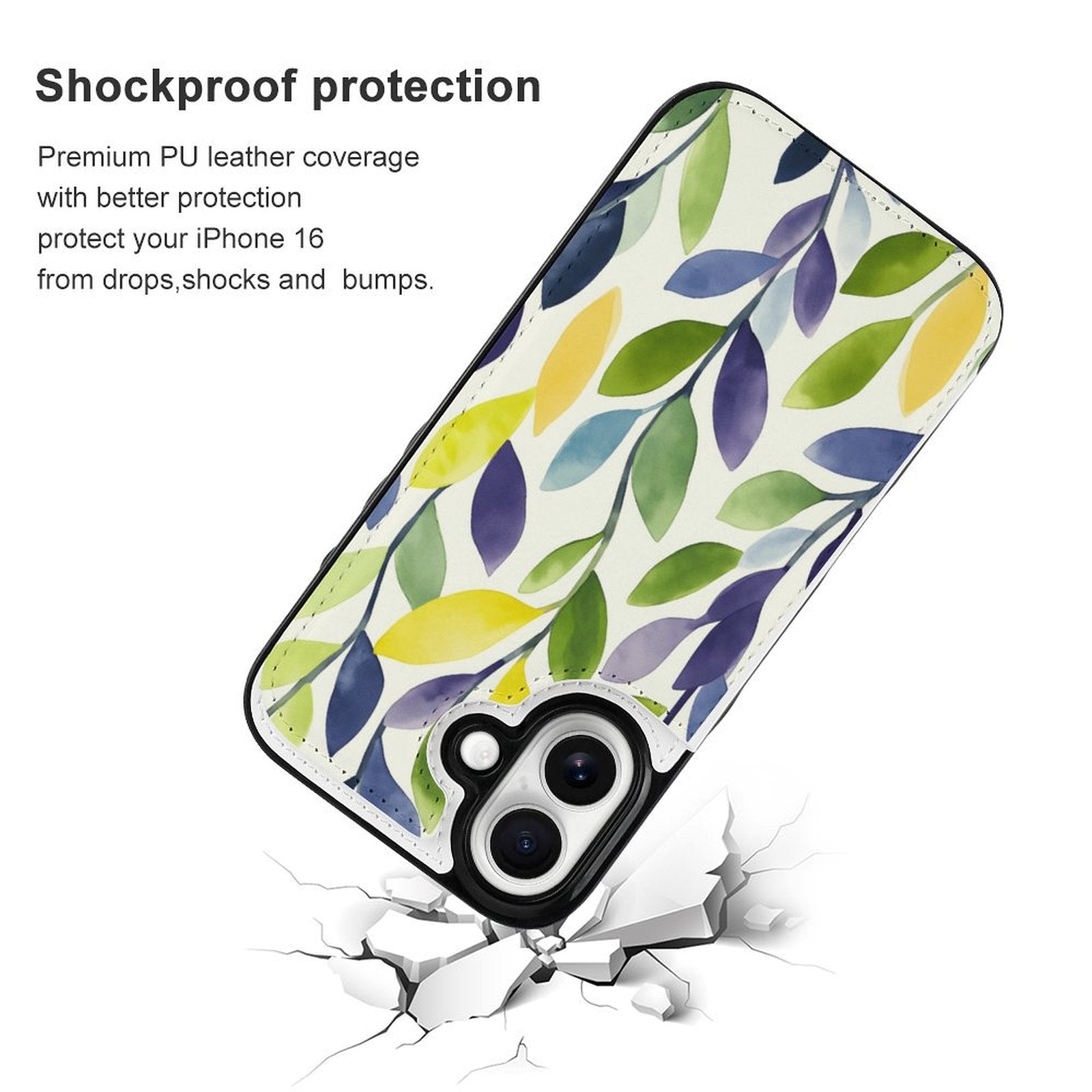 Designed for nature lovers and art souls, this wallet phone case features watercolor-inspired colorful leaves, exuding a fresh and calming vibe. Crafted with soft leather and TPU shockproof edges, and equipped with 3 card slots, it perfectly blends style and practicality.